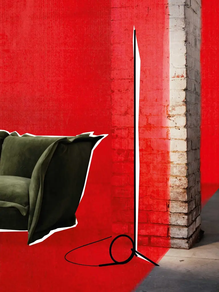 Pipe was born from Diesel’s research in the world of fabrics and is available in bleached raw linen or with printed patterns.The irregular weave transforms into a luminous décor, adding further emotion to the fabric and revolutionizing the traditional lampshade.Spring Floor consists of a tubular metal rod and a LED strip that projects a linear beam of light onto the wall against which it is placed. The base can be oriented in two directions. This allows positioning the cable exit towards the wall or 180° in the diametrically opposite direction. Spring is available in a single height of 180 centimetres and in the Deep Black (matt black) finish; as for the LED strip, it is available in a 2700K version.DIMENSIONS:D. 47 x W. 35 x H. 180 cm
