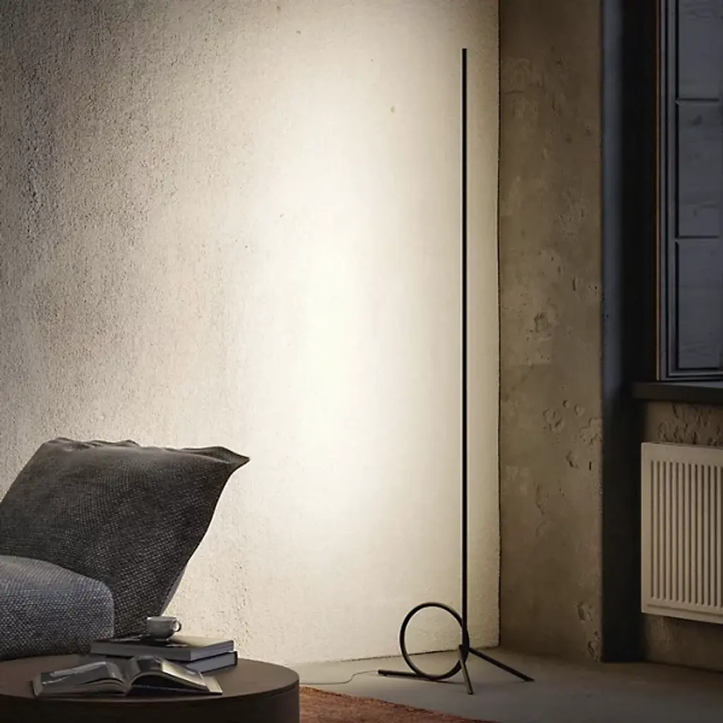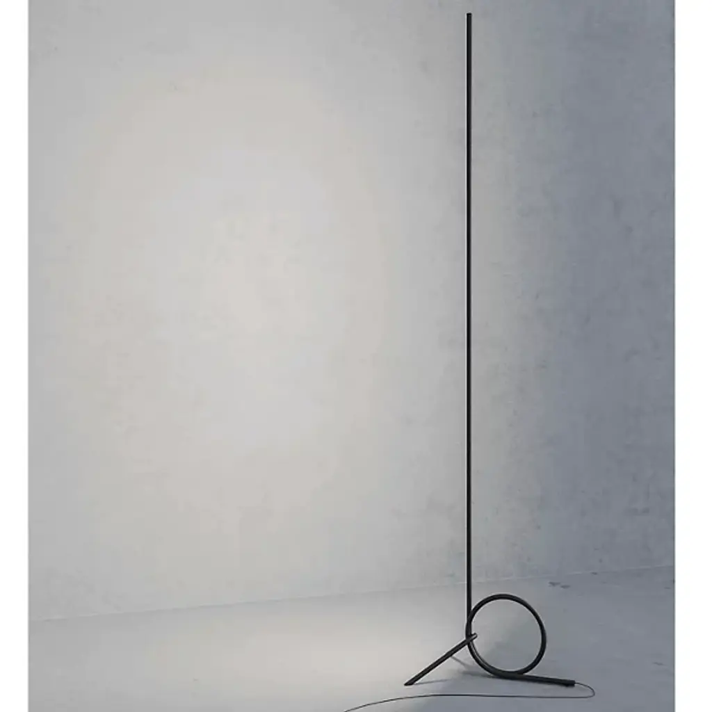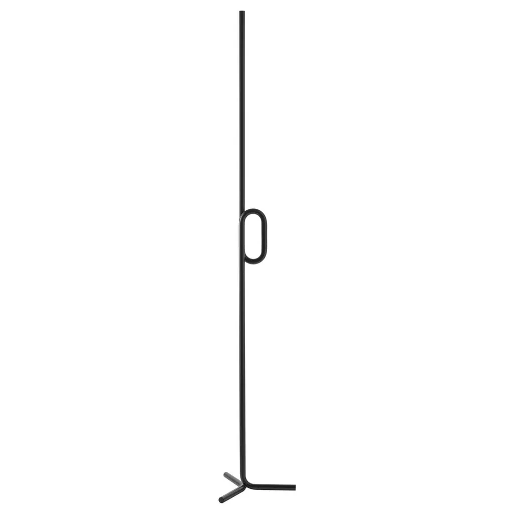 The Spring LED Floor Lamp from Diesel Living with LODES adds a stark, linear accent that enhances but does not overpower its surroundings. Inspired by safety pins used in fashion, its structure, a slim metal rod accented by a curling swirl at its base, is simple, light, and daringly direct. Ideal for specifically illuminating walls when turned towards them, its tubular metal stem features an inset LED strip able to be oriented inward for offset ambiance and warmth or facing outward to deliver more powerful direct light.