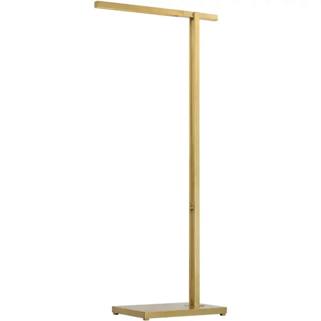 The Stagger LED Floor Lamp by Visual Comfort Modern reimagines ambient lighting through architectural minimalism. Designed by Mick De Giulio, its simple structure includes a pair of sleek aluminum bars that intersect at the top. The horizontal bar houses strategically positioned LED lighting where an acrylic diffuser transforms its stark light into a nuanced, inviting glow. More than a mere floor lamp, this fixture makes a sculptural statement that infuses contemporary spaces with style and much-needed lighting.
