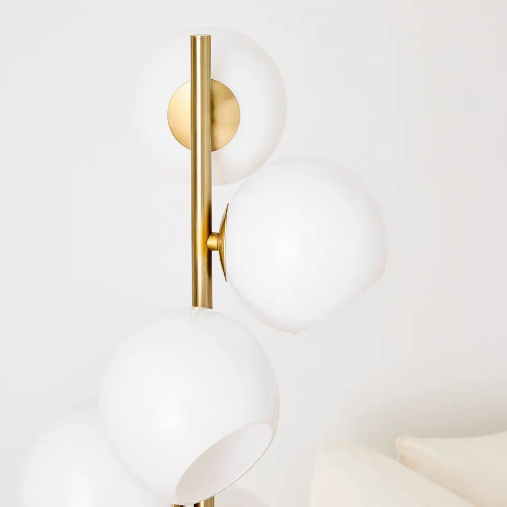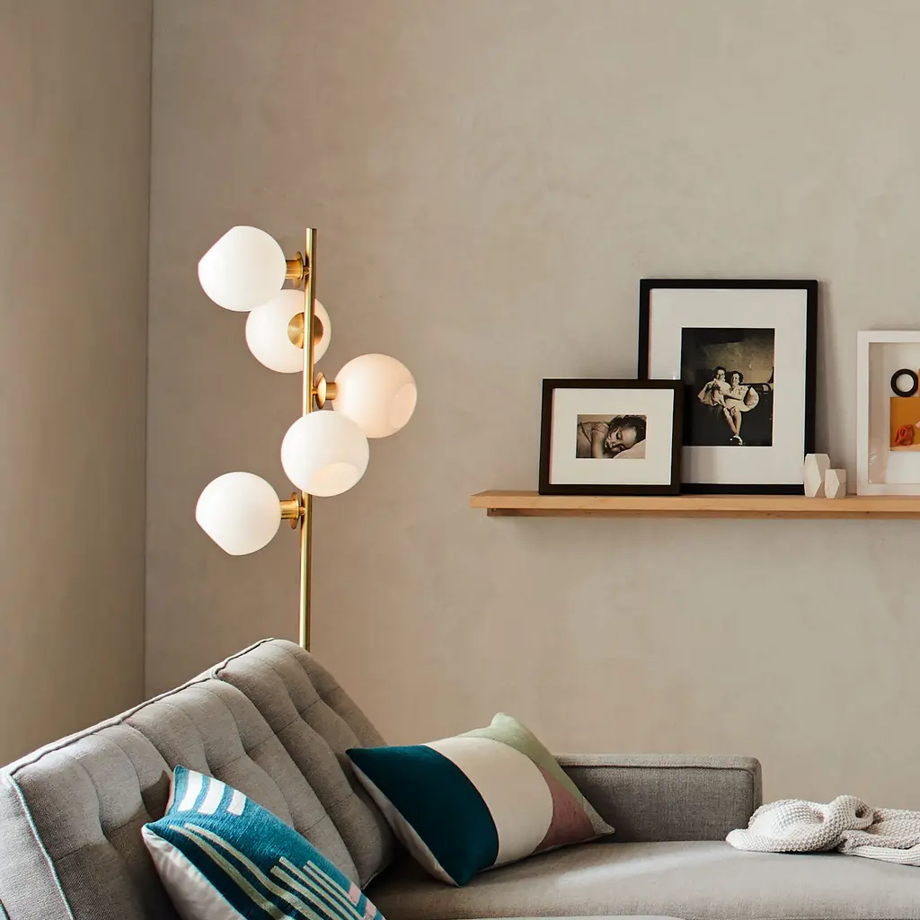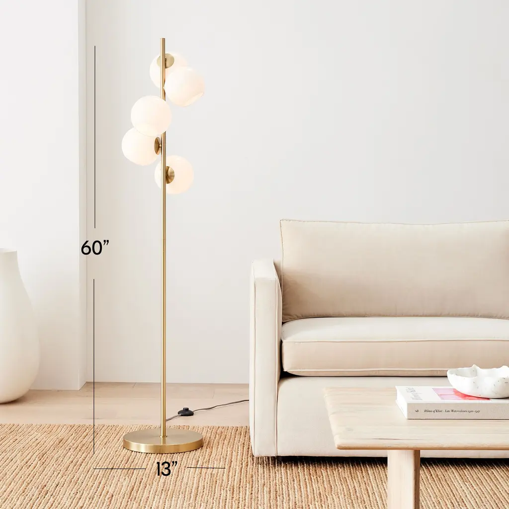 Its five glass orbs cast a romantic glow. An airy stem offers a modern feel. Instantly elevates any space in your home. Contract Grade, so you know it's built to last.