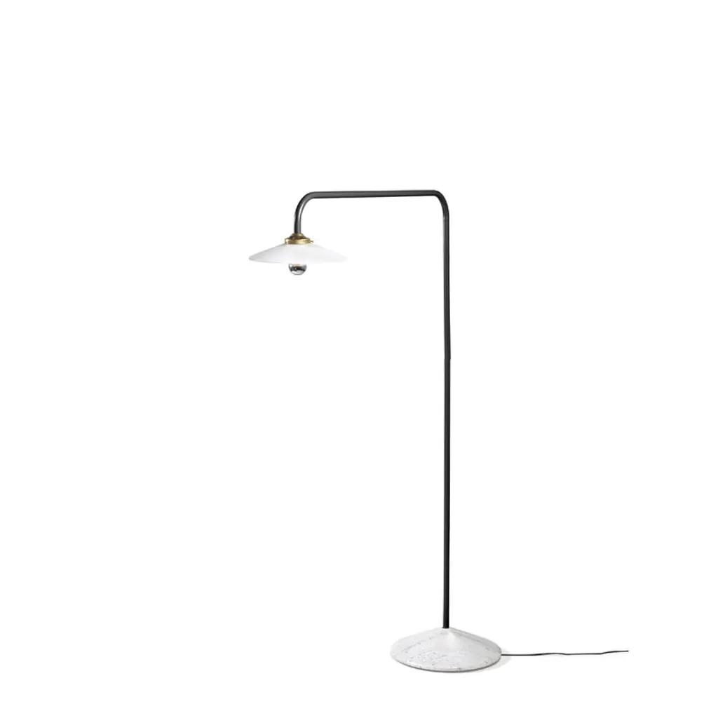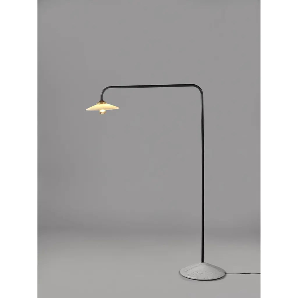 The Standing Lamp Marble, designed by Muller Van Severen for Valerie_objects, draws the eye with its minimal yet distinctly playful character. The luminaire's slender frame arcs upward and bends back toward the floor like a line drawing, ending in a classic glass shade. A solid marble base adds a touch of grounding contrast, making the Standing Lamp Marble an ideal reading light next to an armchair at home or a striking detail in cafés, hotel lobbies, and other public spaces.