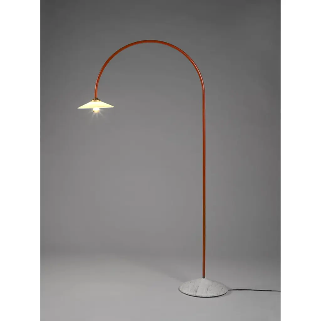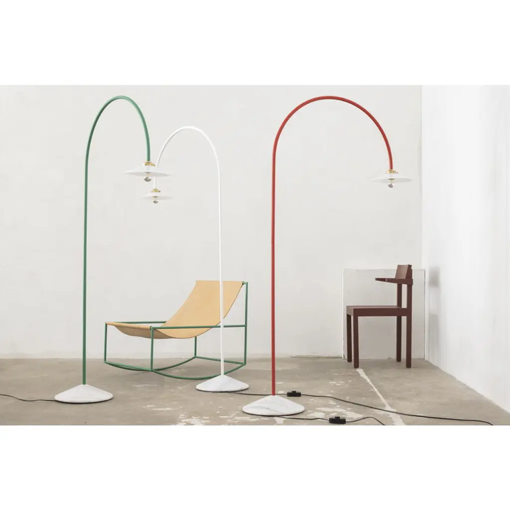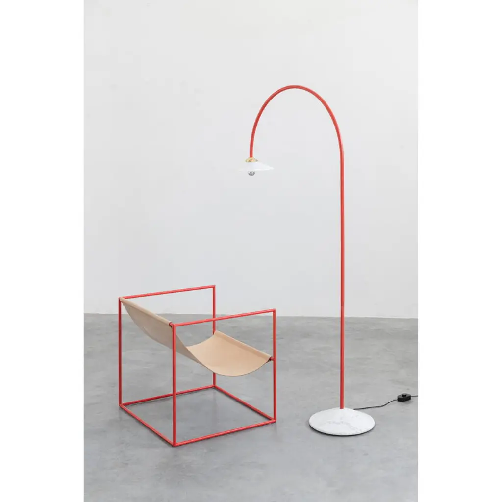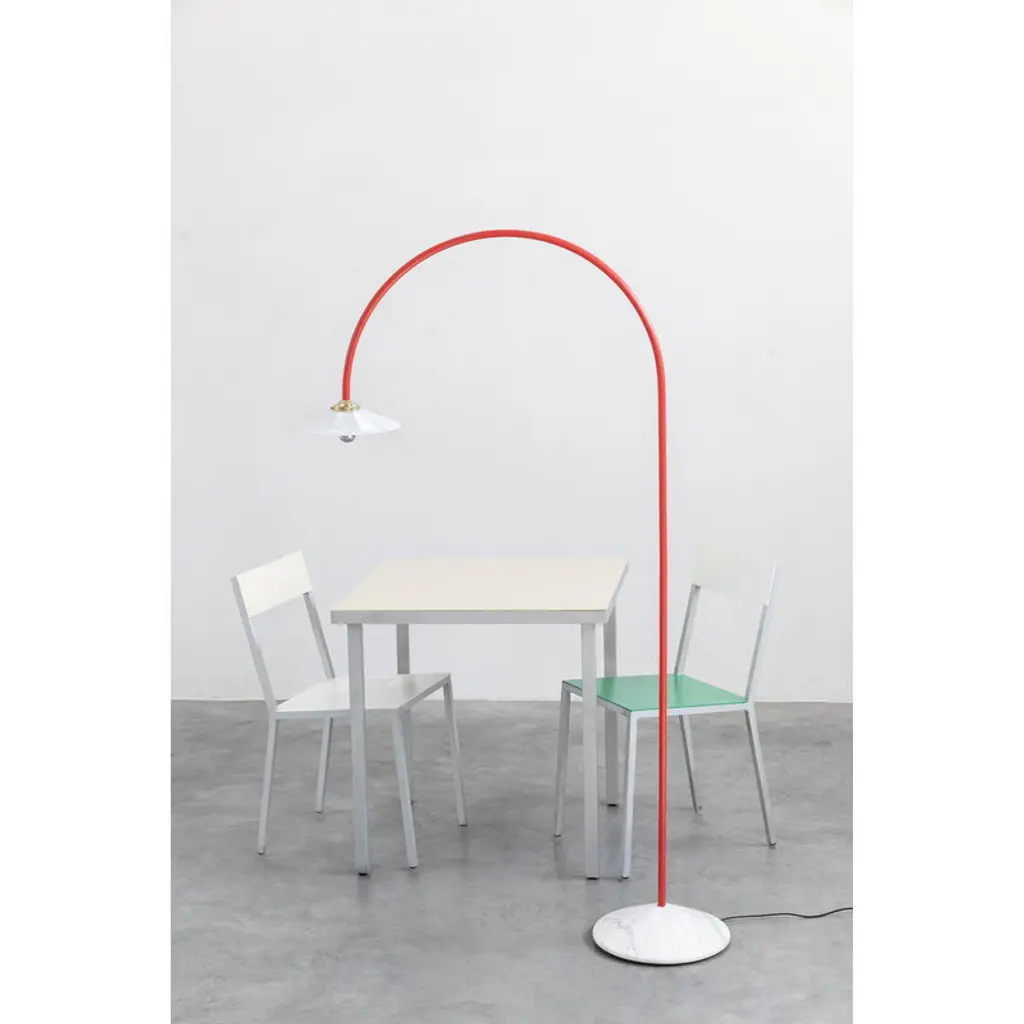 The Standing Lamp Marble, designed by Muller Van Severen for Valerie_objects, draws the eye with its minimal yet distinctly playful character. The luminaire's slender frame arcs upward and bends back toward the floor like a line drawing, ending in a classic glass shade. A solid marble base adds a touch of grounding contrast, making the Standing Lamp Marble an ideal reading light next to an armchair at home or a striking detail in cafés, hotel lobbies, and other public spaces.