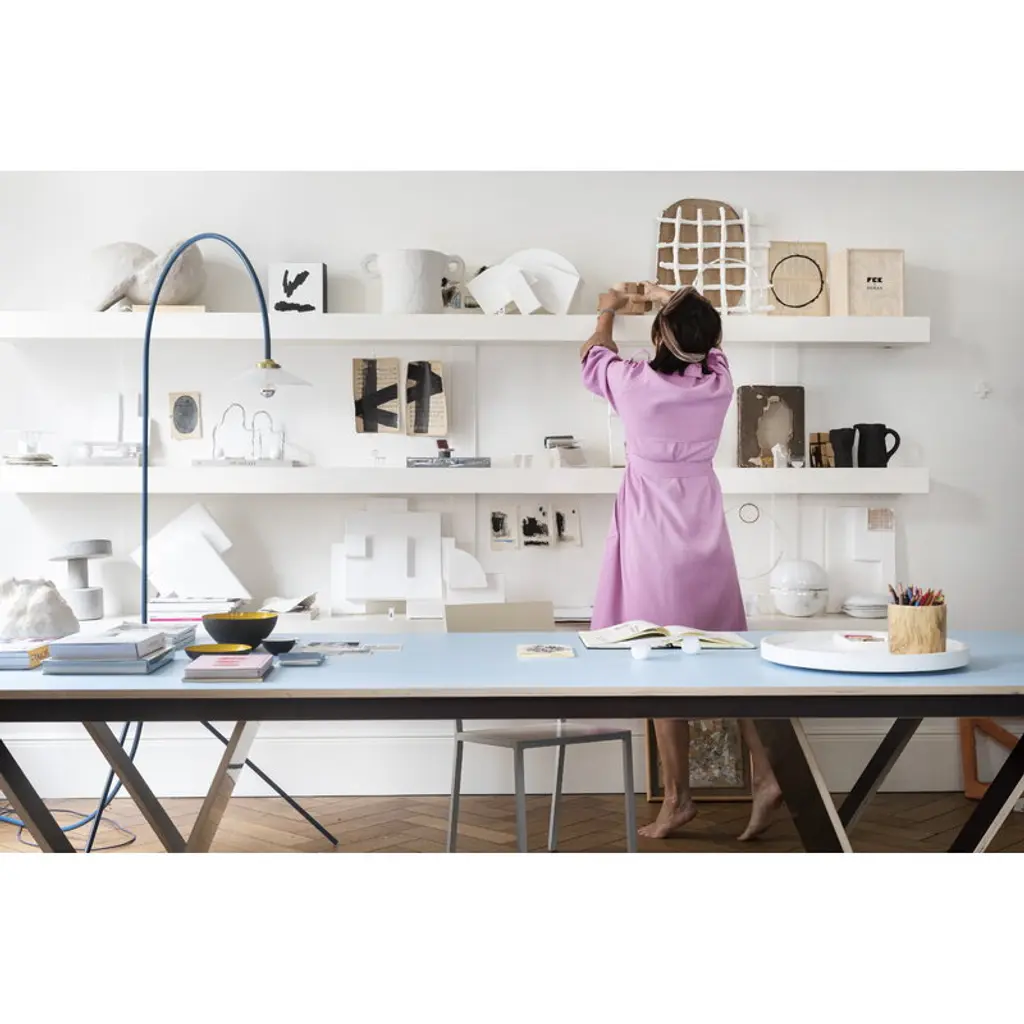 valerie objects’ Standing Lamp, designed by Muller Van Severen, catches the eye with its simple yet distinctively playful design. Like a flowing line drawing, the Standing Lamp curves upwards and then back towards the floor, eventually encountering a subdued, classic glass shade. Propped up by two metal legs, the Standing Lamp is the ideal reading lamp placed next to an armchair, both at home and in public areas such as cafes or hotel lobbies.