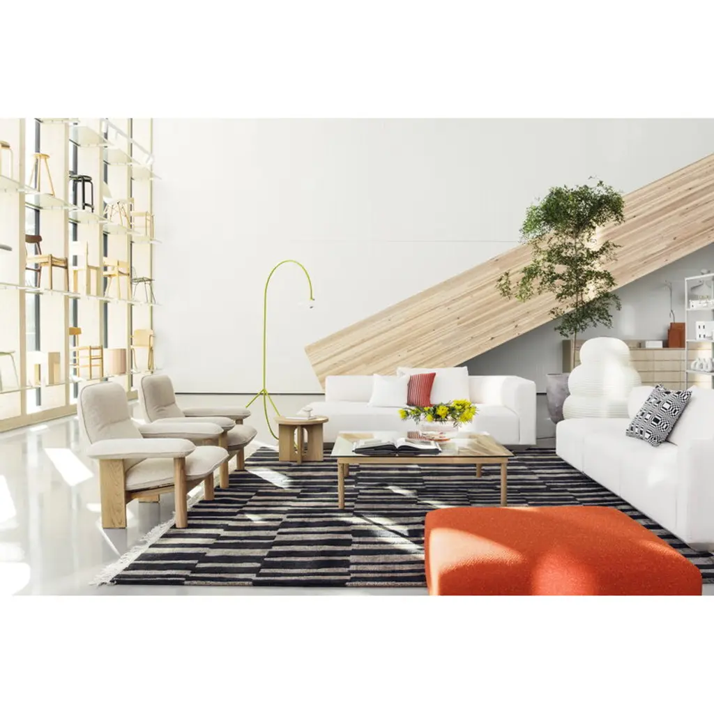 valerie objects’ Standing Lamp, designed by Muller Van Severen, catches the eye with its simple yet distinctively playful design. Like a flowing line drawing, the Standing Lamp curves upwards and then back towards the floor, eventually encountering a subdued, classic glass shade. Propped up by two metal legs, the Standing Lamp is the ideal reading lamp placed next to an armchair, both at home and in public areas such as cafes or hotel lobbies.