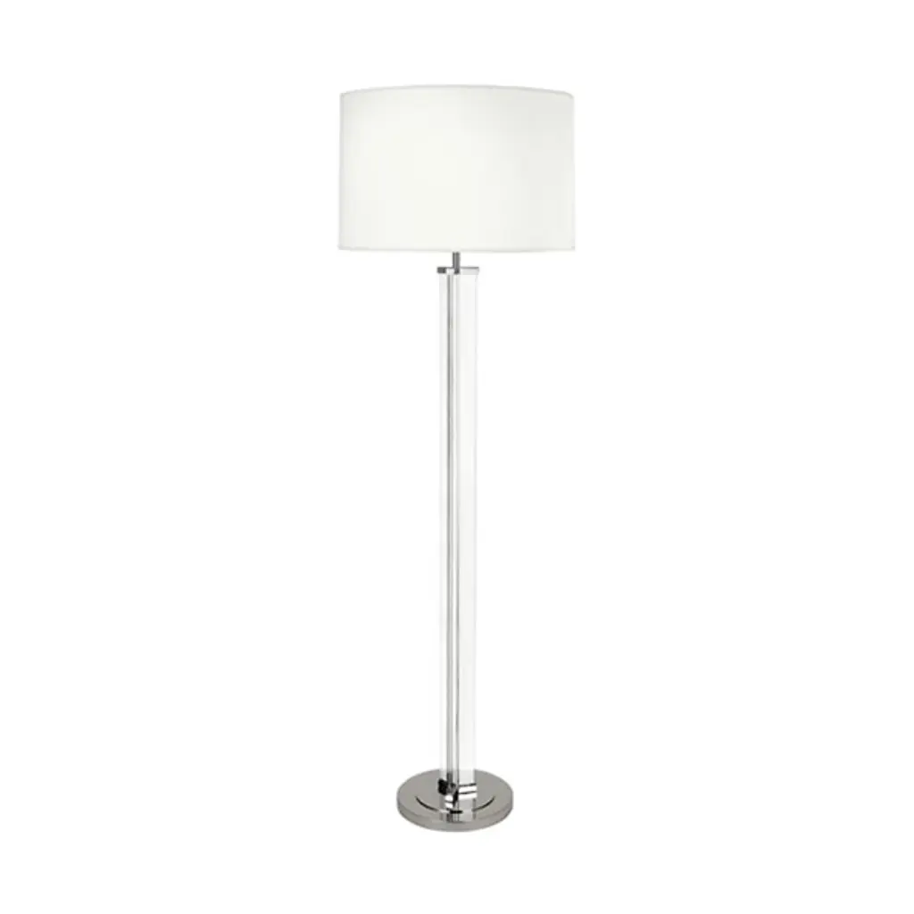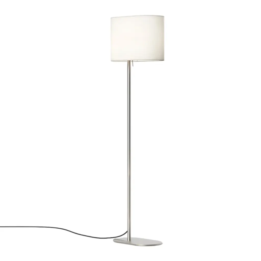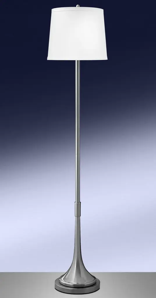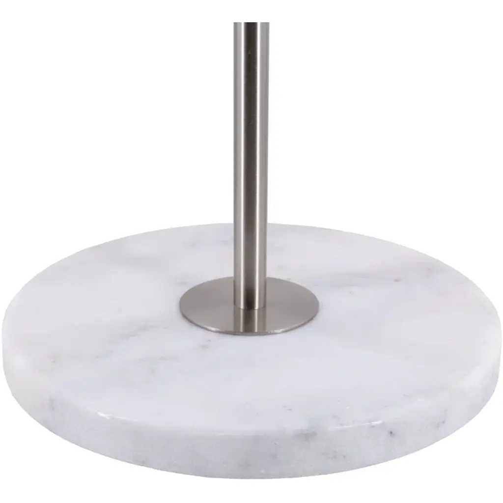 Brighten up in minimal style. This floor lamp leans into its scaled-back design for a sleek look in your space. Crafted with a circular stone-look base and a slim, silver-finished metal arm, this lamp features a sleek, simple silhouette. A white fabric drum shade caps off the top, diffusing the light of the 100W bulb (sold separately). ambiently throughout your space while complementing the minimalist look. This lamp is powered by a 3-way switch.
