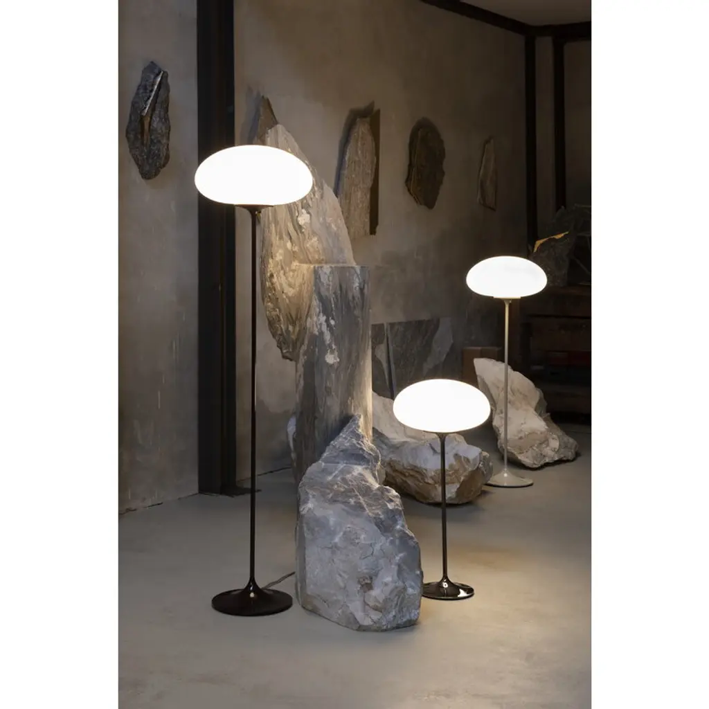 GUBI’s Stemlite floor lamp invigorates the decor with authentic 1960s exuberance. Designed in 1962 by legendary American designer Bill Curry, the Stemlite collection draws inspiration from nature: the streamlined die-cast metal base resembles a tough yet delicate stem of a tulip, carrying the beautiful glass shade like a fragile bud waiting to unfold. The simplistic yet impressive design language of the Stemlite lamps can be easily combined with all styles of decor from classic to eclectic to experimentative, making them an exceptional fit for public spaces as well as private.