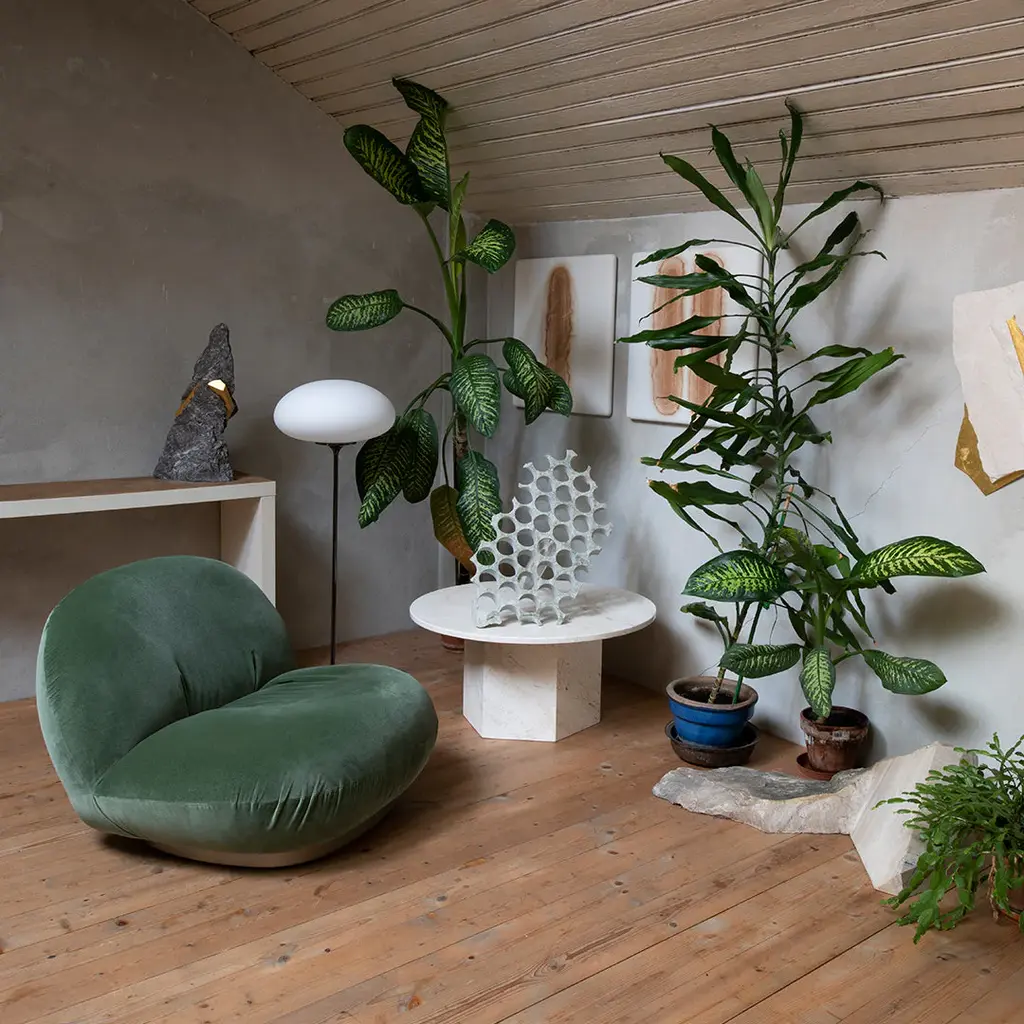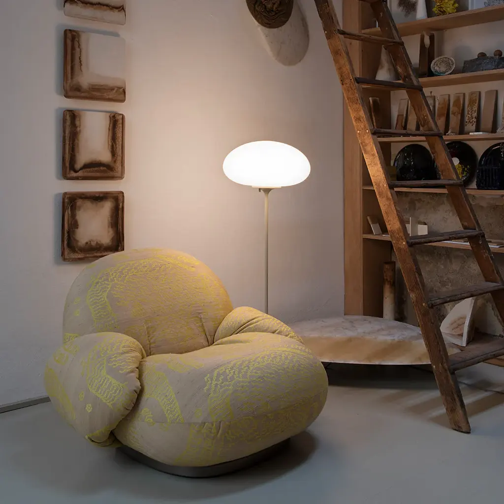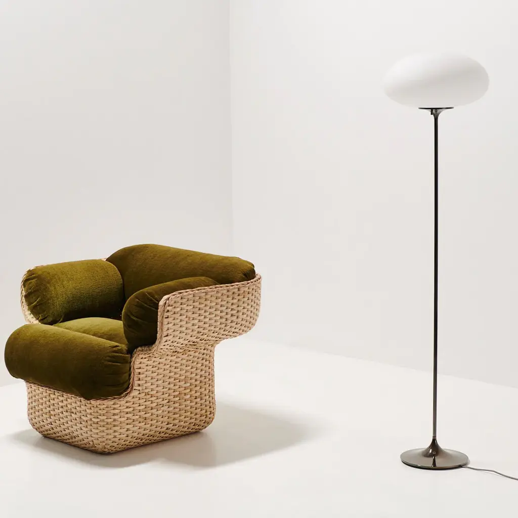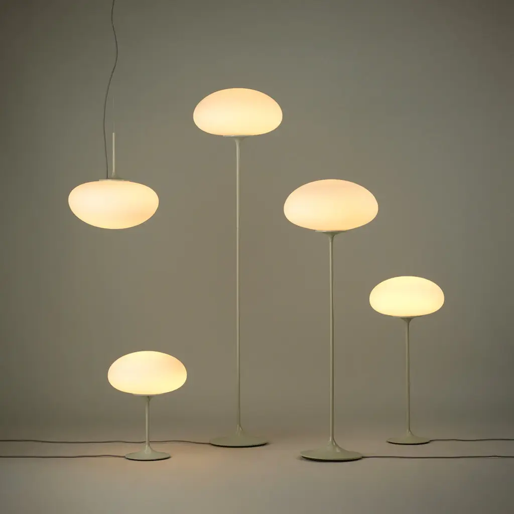 The Stemlite (1962) was the first ‘total look†lamp, a pioneering new typology conceived by American Designer Bill Curry, which replaced the traditional base-plus-shade form with a single self-contained unit comprising interchangeable modules. His debut design, the much-emulated Stemlite, was named “most influential lamp of the year� by Industrial Design Magazine in 1965, used on the set of the original Star Trek TV series, and remained in production until 1977. Now remastered by GUBI after almost half a century, the new collection comprises two table lamps, two floor lamps and a new pendant – a simple inversion of the original design – in a contemporary yet authentic color palette. Todayâ€s Stemlite remains true to Curryâ€s designs, comprising three of the original heights: two table heights, one of which was originally conceived as a floor lamp and the original floor lamp height. A second, taller floor lamp has been added and a pendant light has been engineered by simply flipping the original design upside-down. A counterweight has been hidden in the negative space created by the geometry of the foot of the upright lamps to meet contemporary safety requirements regarding stability and versions of the floor and pendant lights with new larger globes are also available.