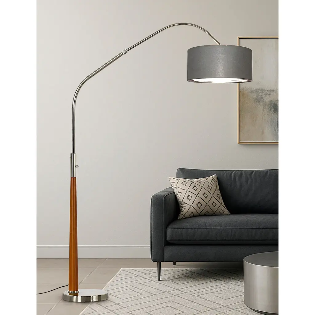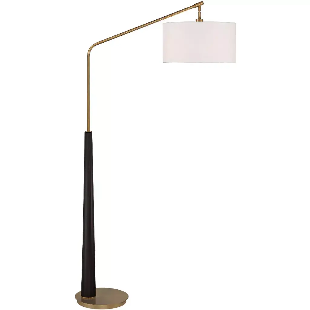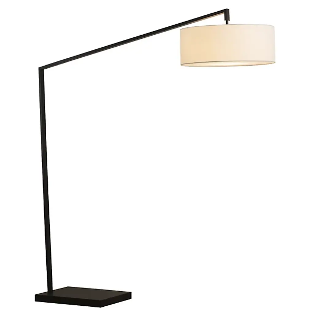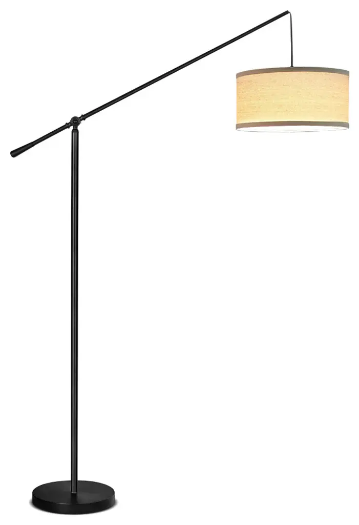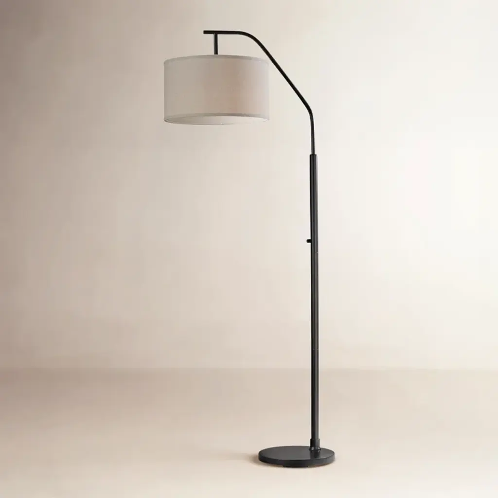 The Stretch Arc Lamp by Nova of California complements modern rooms with clean lines and a minimalistic aesthetic. The full-reach arc arm positions the white linen shade directly into the center of the room or wherever light is most needed. The lamp is turned on and off with the simplicity of an on/off step switch.