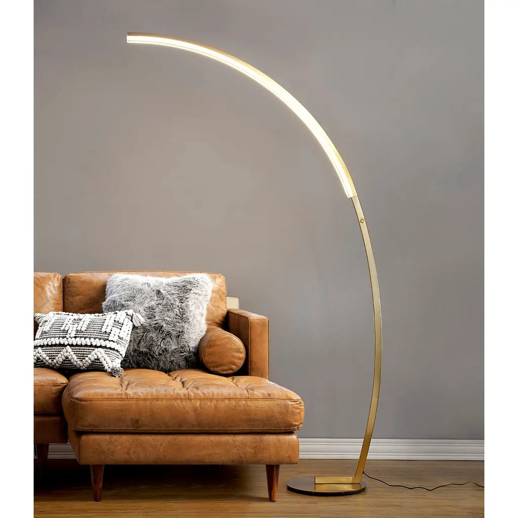 Strick & Bolton Zouma Chrome Dimmable Led Arc Floor Lamp - Brass
