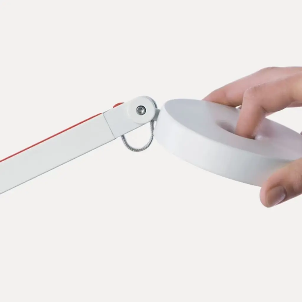 An elegant and efficient piece designed to bring light to any space. The String LED Floor Lamp from Rotaliana by Luminart is a sleek and minimalistic piece from designers Dante Donegani and Giovanni Lauda. This towering composition is made in Italy and crafted with an extruded aluminum body and circular cast iron base. The two segments of its jointed arm are connected by a slender yet sturdy fabric cable, allowing for a wide range of movement and giving the piece its name. A disc-shaped head with a touch sensor contains its LED light source, directing a focused beam where desired with ease.