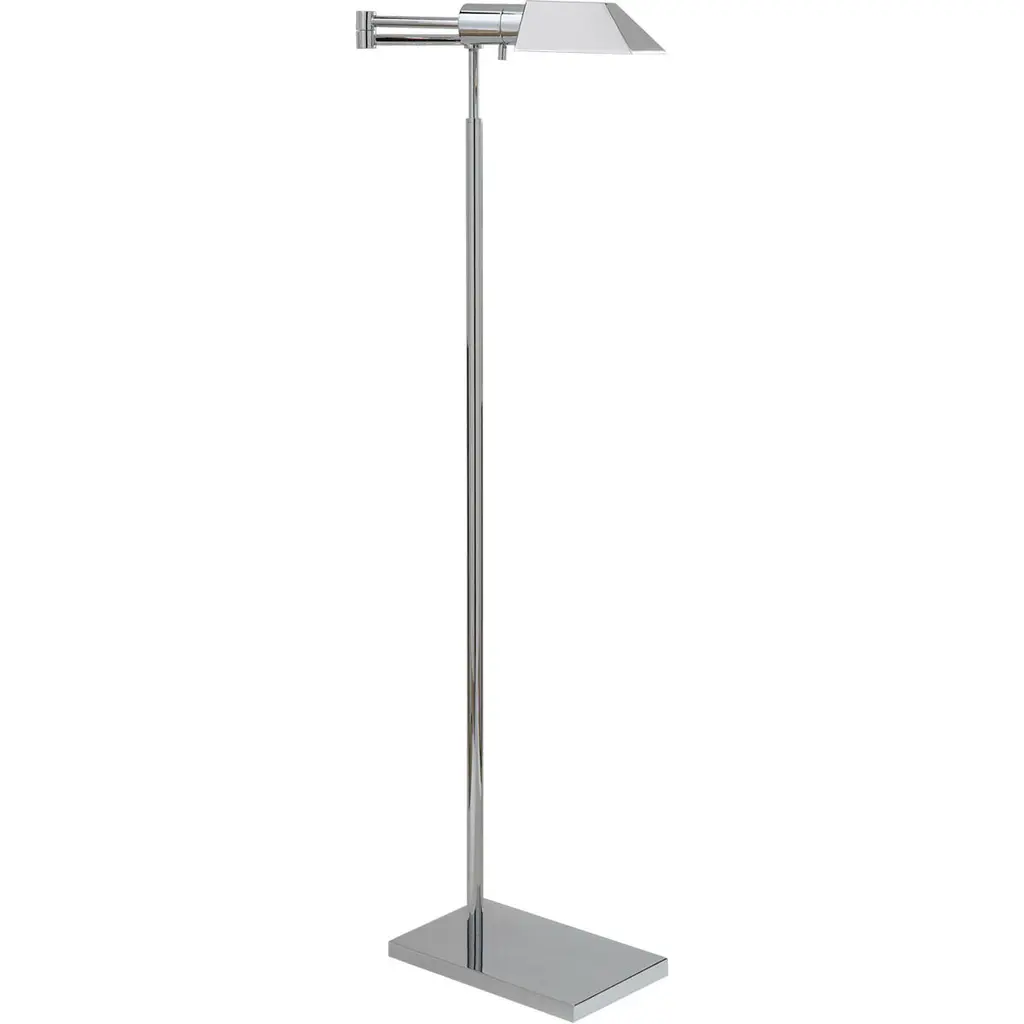 The Visual Comfort Signature, formerly known as Visual Comfort, Studio Swing Arm Floor Lamp showcases a classic sense of style with an all metal piece and adjustable arm. Known as the Library Lamp aesthetic the large rectangular base makes this piece sturdy and the dimmer switch near the adjustable shade makes it easily accessible. Feel free to adjust the shade side to side to find the right lighting for your own personal needs.