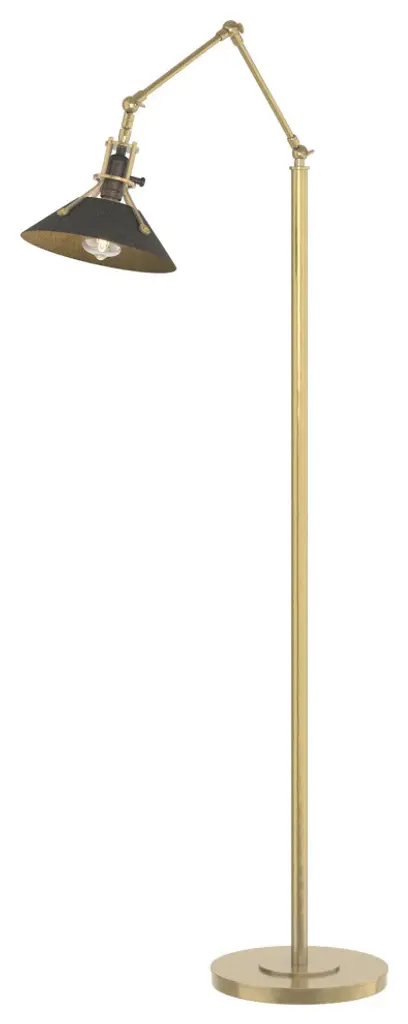 The Visual Comfort Signature, formerly known as Visual Comfort, Studio Swing Arm Floor Lamp showcases a classic sense of style with an all metal piece and adjustable arm. Known as the Library Lamp aesthetic the large rectangular base makes this piece sturdy and the dimmer switch near the adjustable shade makes it easily accessible. Feel free to adjust the shade side to side to find the right lighting for your own personal needs.