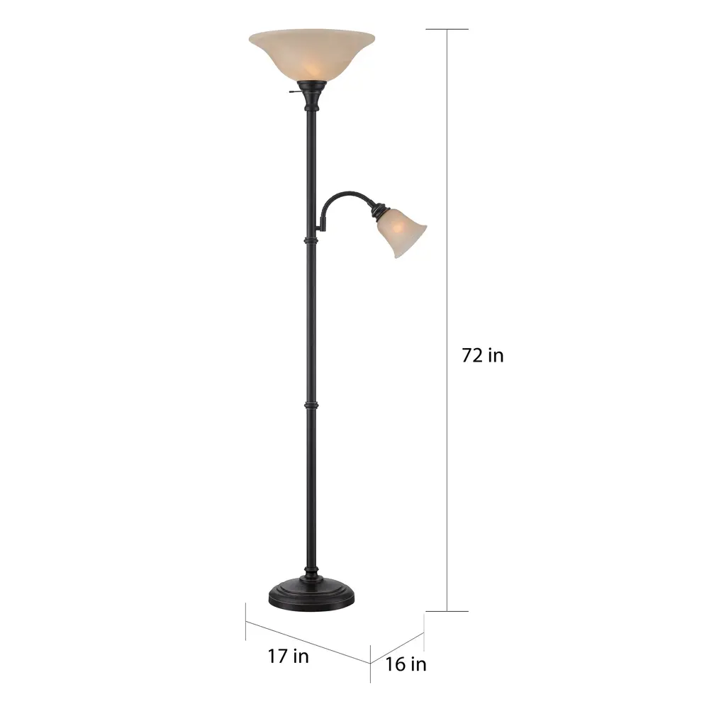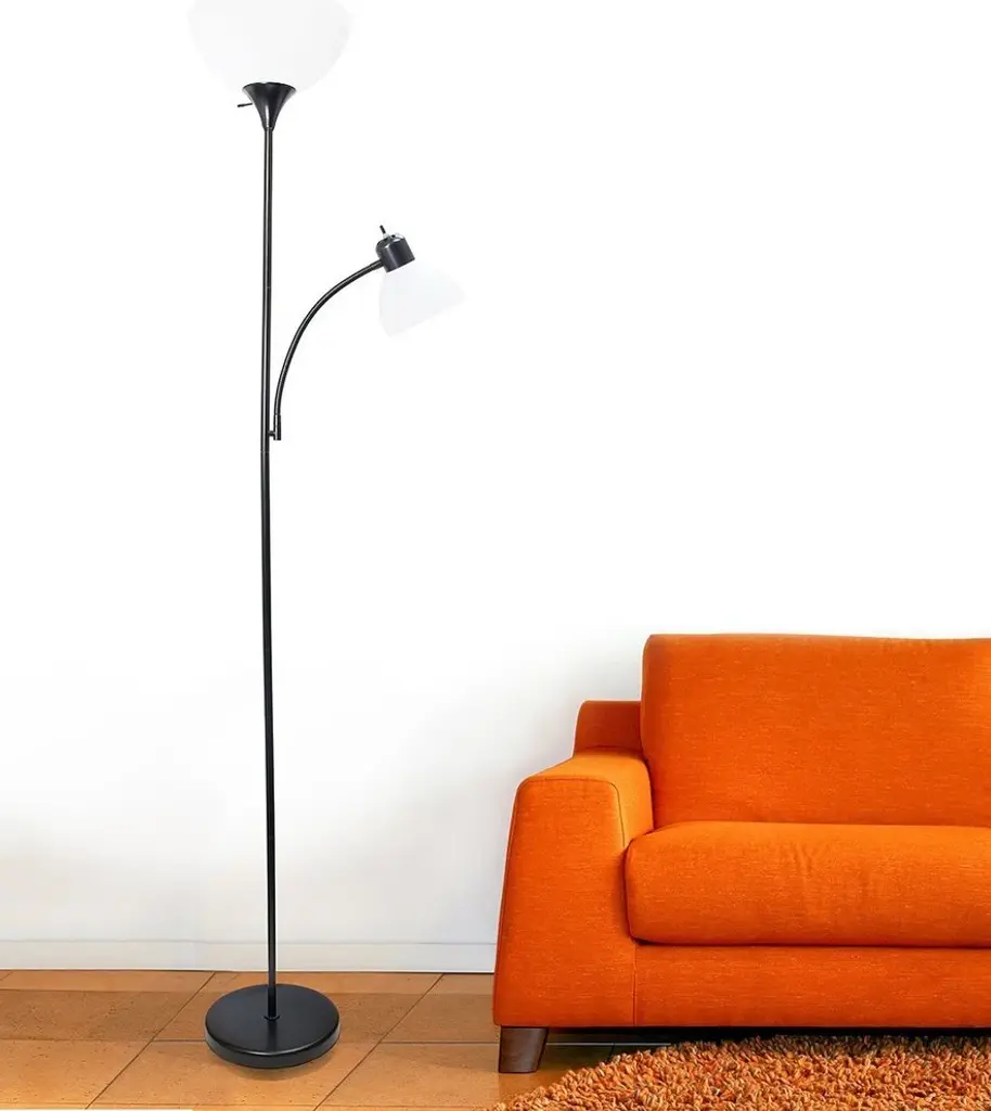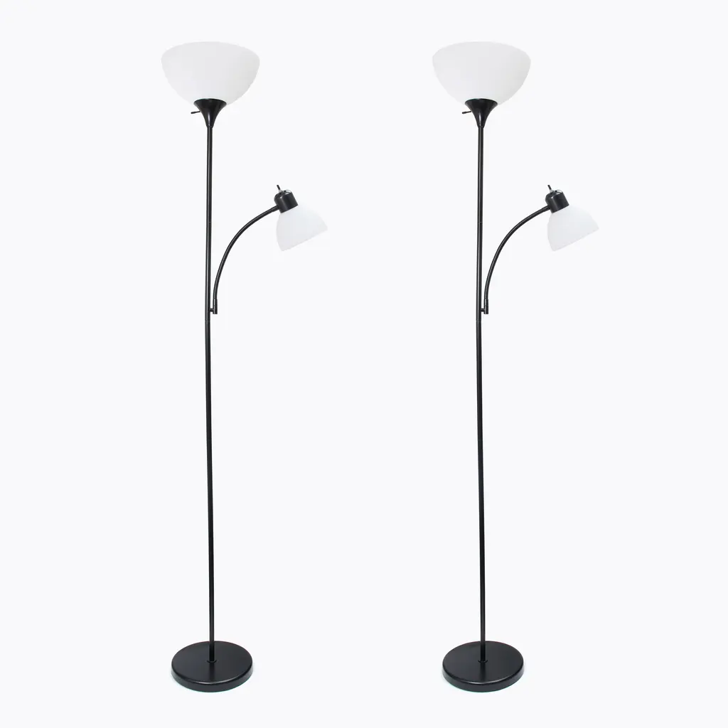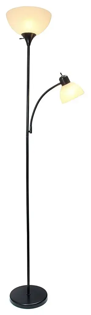 A charming, inexpensive, and practical floor lamp to meet your basic lighting needs. This simple mother/daughter floor lamp with reading light features a painted finish and plastic white shades. Perfect for living room, bedroom, office, kids room, or college dorm.Painted Finish. White Plastic Shades. Floor lamp uses 1 X 100W 3-way type A medium base bulb (not included)Reading light uses 1 X 60W type A medium base bulb (not included). L:15.5" x W:11.35" x H: 71.5". Some assembly required- Painted Finish- White Plastic Shades- Floor lamp uses 1 X 100W 3-way type A medium base bulb (not included)Reading light uses 1 X 60W type A medium base bulb (not included)- Dimension L:15.5" x W:11.35" x H: 71.5"- Some assembly required