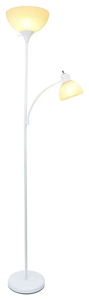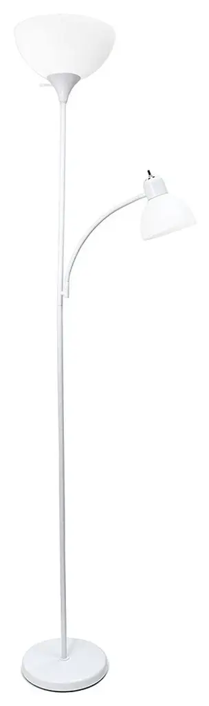A charming, inexpensive, and practical floor lamp to meet your basic lighting needs. This simple mother/daughter floor lamp with reading light features a painted finish and plastic white shades. Perfect for living room, bedroom, office, kids room, or college dorm.Painted Finish. White Plastic Shades. Floor lamp uses 1 X 100W 3-way type A medium base bulb (not included)Reading light uses 1 X 60W type A medium base bulb (not included). L:15.5" x W:11.35" x H: 71.5". Some assembly required- Painted Finish- White Plastic Shades- Floor lamp uses 1 X 100W 3-way type A medium base bulb (not included)Reading light uses 1 X 60W type A medium base bulb (not included)- Dimension L:15.5" x W:11.35" x H: 71.5"- Some assembly required