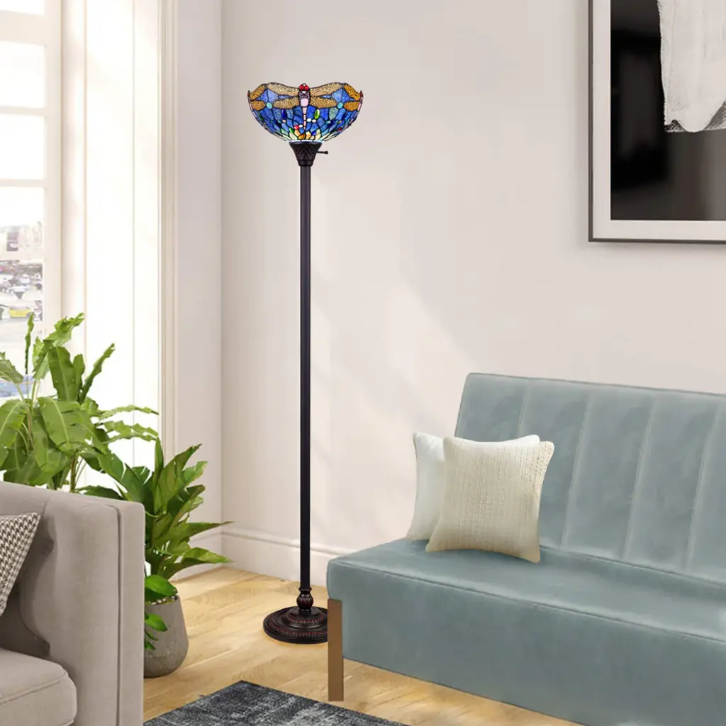 Sunniva Dragonfly-Style 1 Light Torchiere Floor Lamp 14" Wide