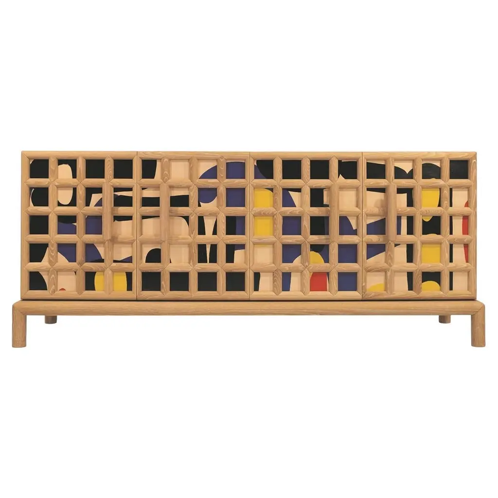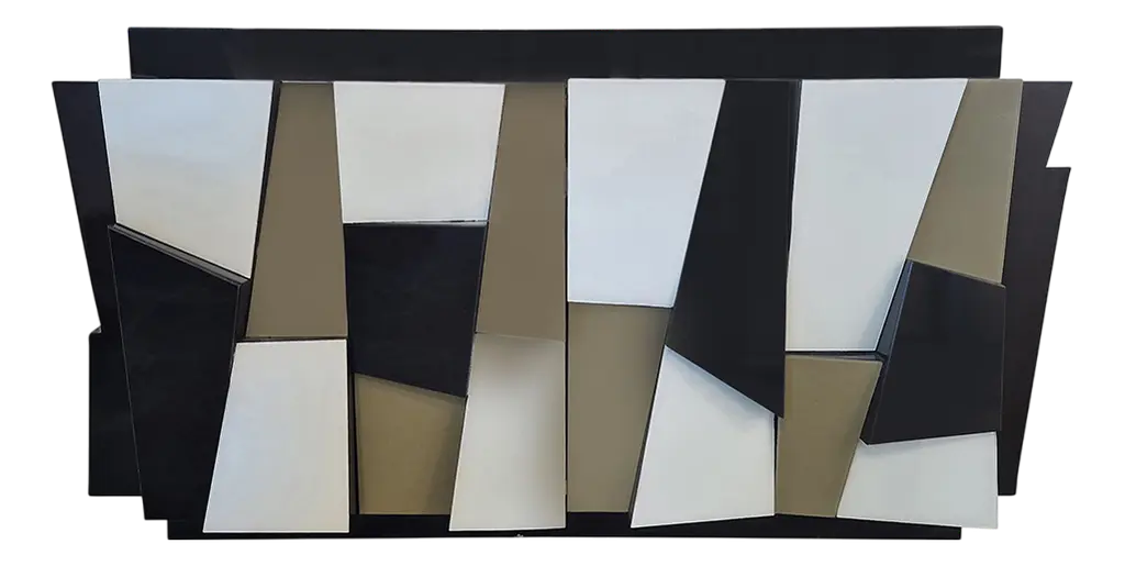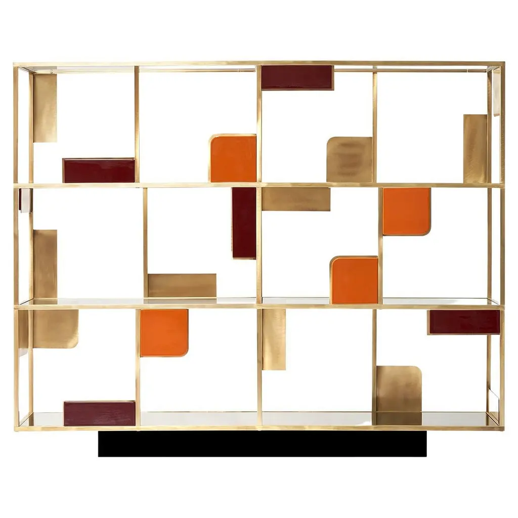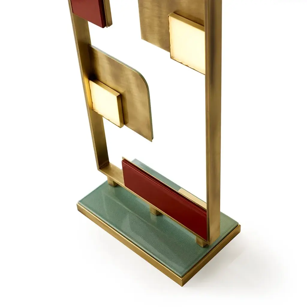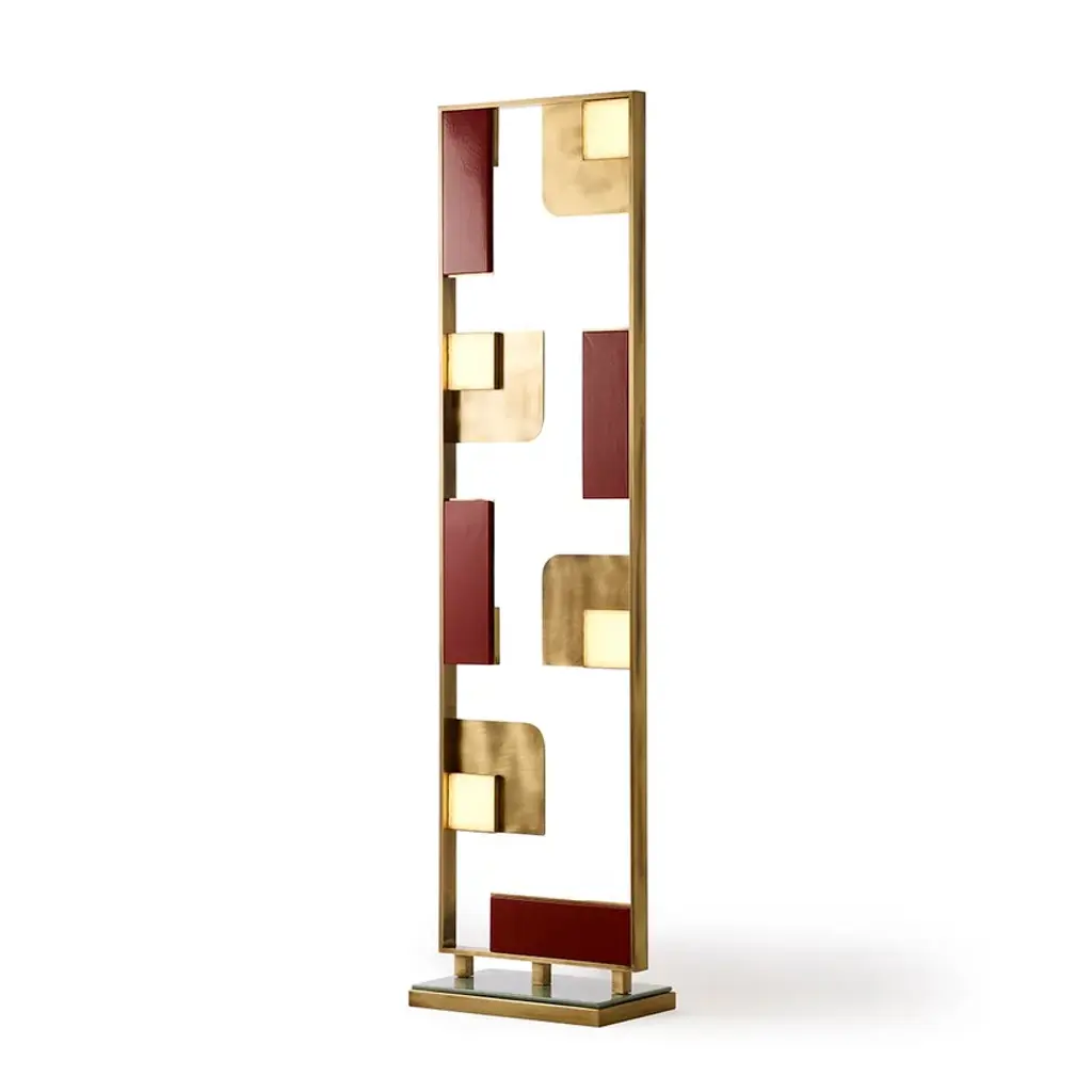 Floor lamp in brushed brass with glazed ceramic tiles. Light source OLED by LG