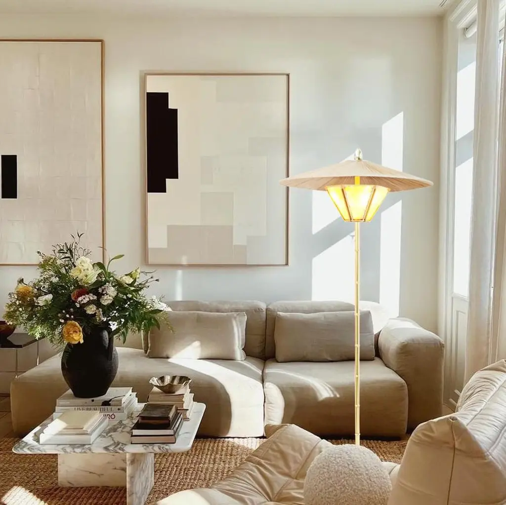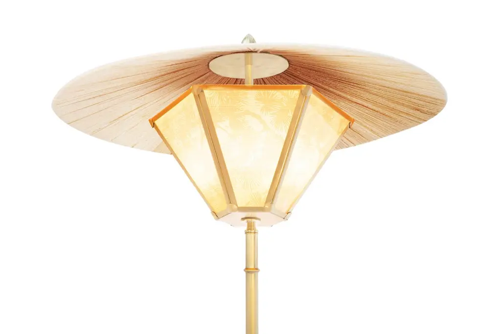 “Sunshine” Contemporary Floor Lamp 60cm, Japanese Vintage Papers, Brass