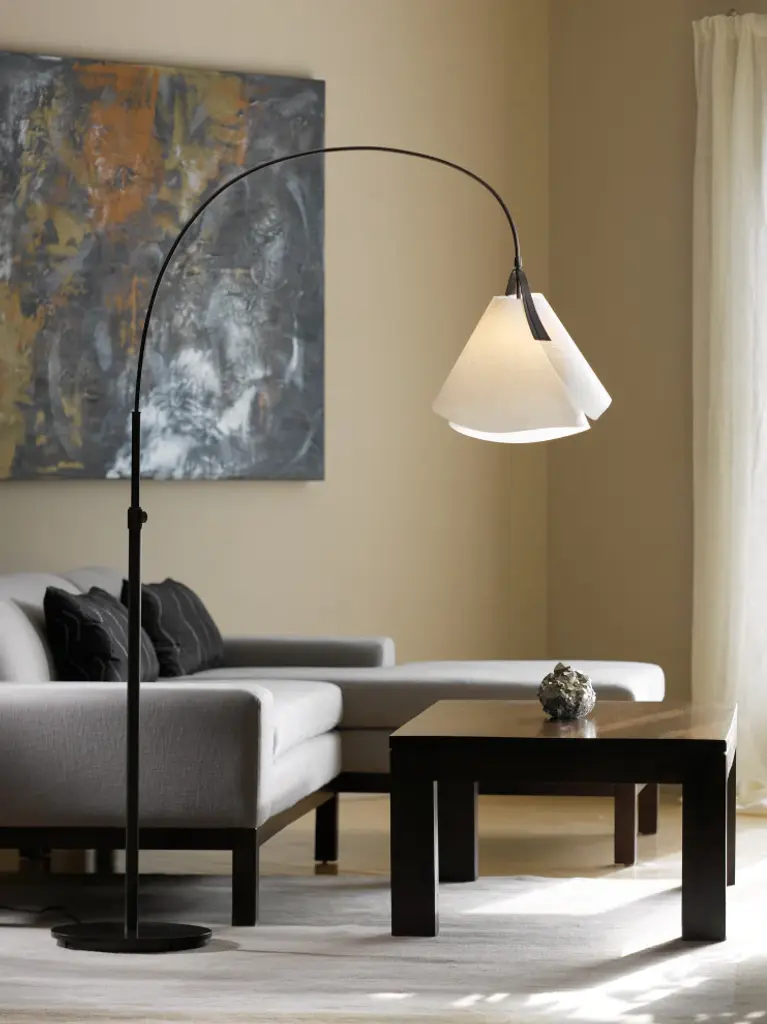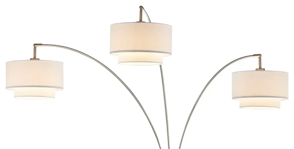 Light up your space with this sleek and modern LED 5-arched floor lamp from Artiva USA. The "UFO" holds super bright and warm (3000K) integrated LED lights with touch dimming function. Perfect for modern or contemporary decor, the curved design adds a soft note to your space while the heavy weighted base grants perfect balance and prevents tipping. With over 6 feet (73") of height and adjustable arches, this lamp provides ample lighting for reading, writing or creating a spotlight in any setting. A perfect addition to any home or office.Features: