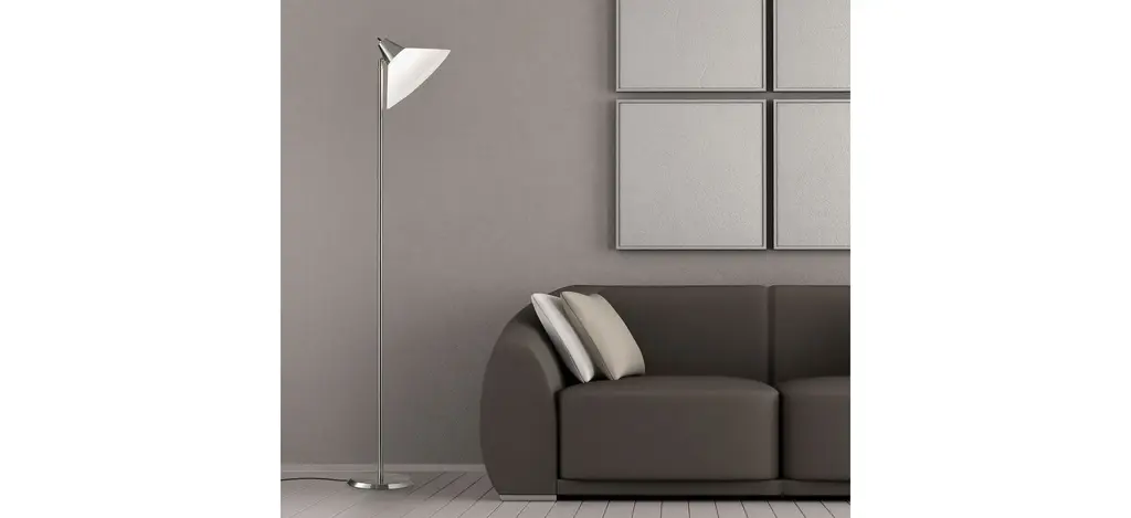 A practical design, the Swivel floor lamp has a basic form that easily integrates into the home office, dorm, living room or studio d_cor. A slim pole with a brushed steel finish makes the design versatile for many room styles. It provides plenty of illumination that can be directed horizontally and vertically, thanks to the adjustable white plastic shade. A rotary switch with on/off functionality is located at the end of the shade. This lamp has a black cord and is smart outlet compatible. Bulb is not included.