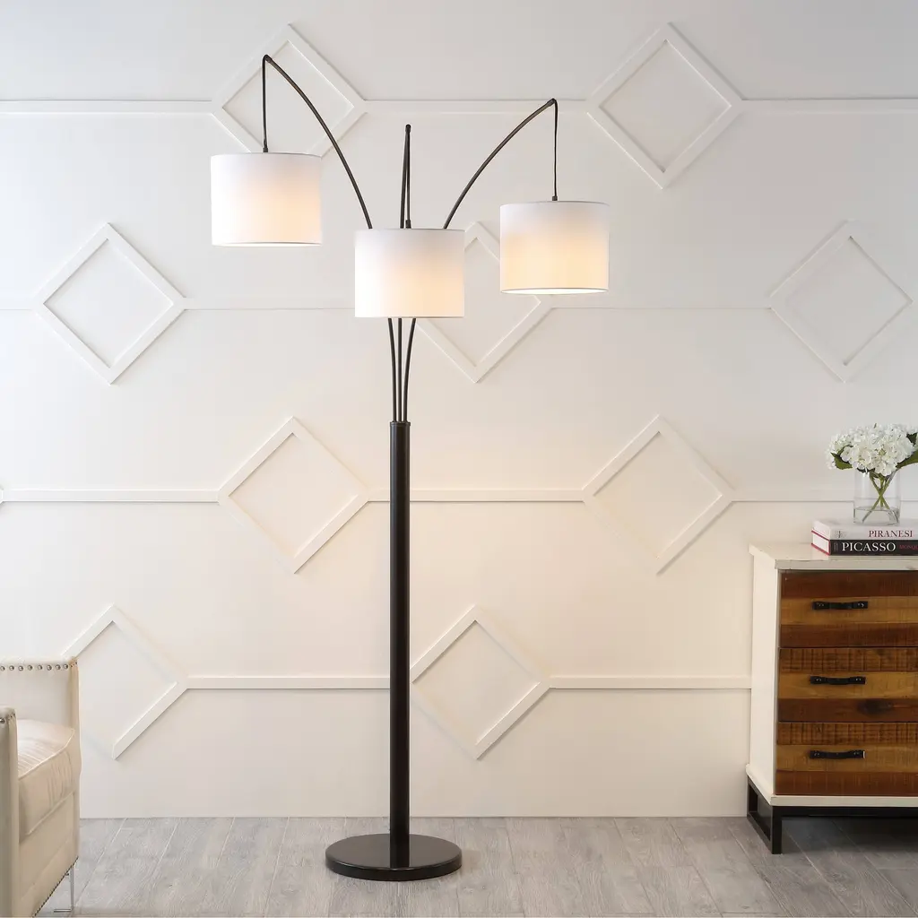 Inspired by midcentury design, our modern floor lamp features three pivoting arms that direct light exactly where it's needed. Linen drum shades filter the light and add a traditional touch. Standing at 78" tall, this adjustable lamp makes a contemporary statement in your living room or home office.Features:Dimensions:About us:You see a lamp.We see a decorative work of art.A perfectly curved shade casts a dramatic shadow on a floor. Compatible with LED lightbulbs: as easy on the environment as they are on the eyes. The JONATHAN Y Lighting collection considers every detail from impeccably sourced materials to designer styling. And our prices are so attractive, we've transformed a functional necessity into a fashion accessory.JONATHAN Y Lighting - a fashion revolution in home decor.