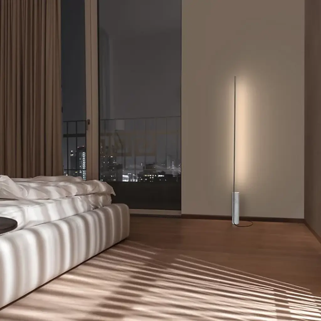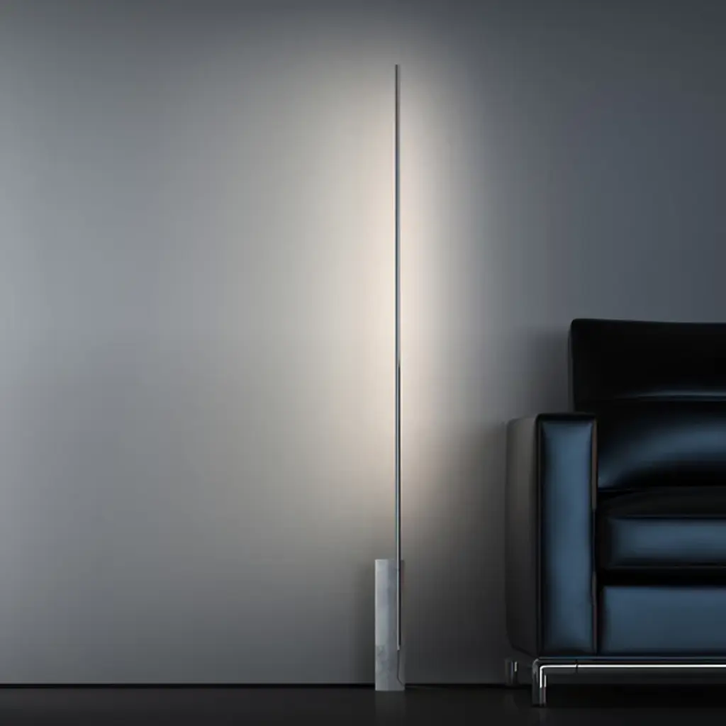 With the T.O LED Floor Lamp from Pablo Designs, creator Carmine Deganello underscores the idea of the pillar with a column of LEDs and a classic marble base. Deganello’s takes an experimental approach to design, finding the right materials to create unexpected lighting results. Refinement is central to this piece. Deganello emphasizes space efficiency with a slender marble base. While small in footprint, this base is big in personality, producing an artful display of rich veins. The great texture of the marble pops against the sleek, uniform finish of the metal lamp head. This linear head packs brilliant lamping and focuses it through its precision-cut opening. The tall, uniform light exiting the head is great for glazing a wall, décor, or setting the ambiance.