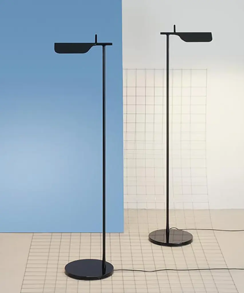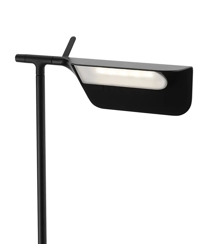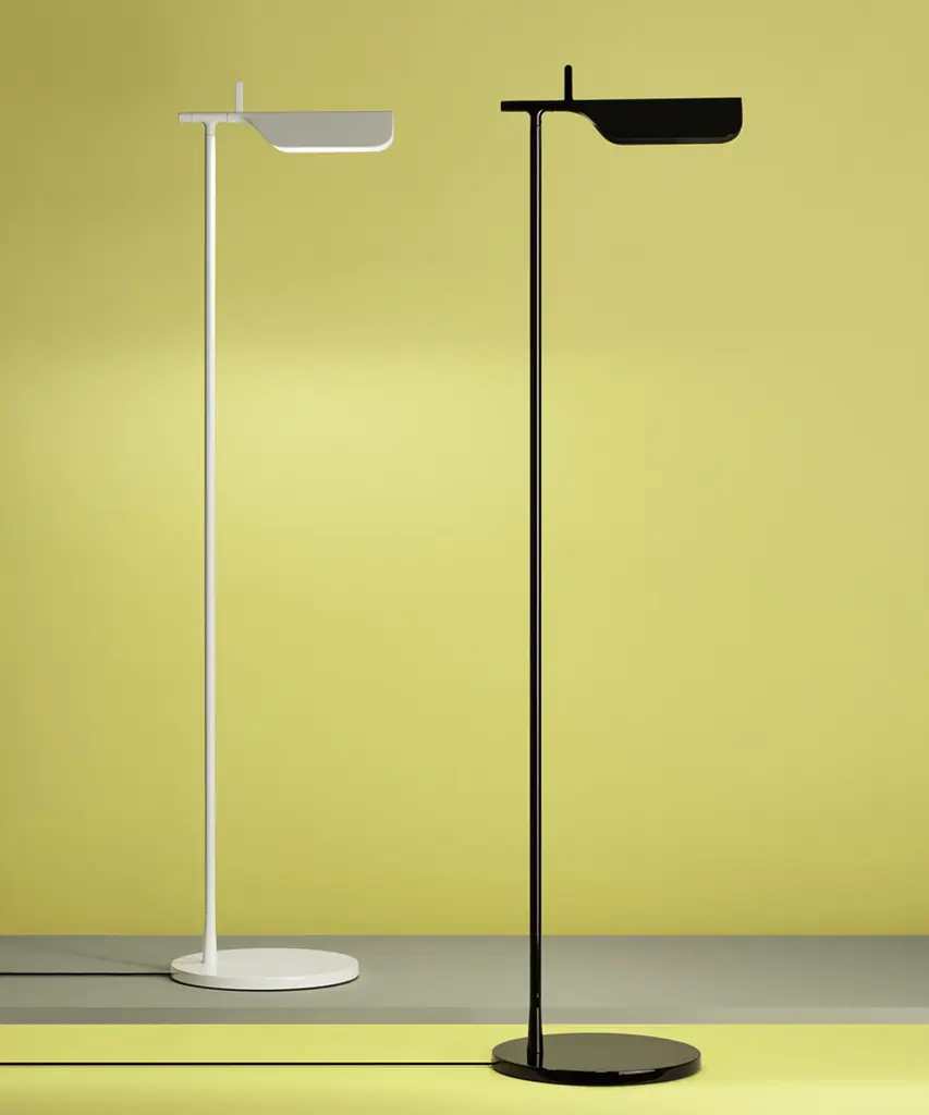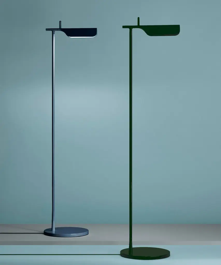 A brand new edition of the Tab family, now with new capabilities in new colors. This new edition of Tab floor lamp has an adjustable head with a 90-degree rotation capability emitting non-dimmable, direct light. Available in 2 new finishes matte blue and matte dark green as well as the original black and white. Brought to life by the design duo of Edward Barber and Jay Osgerby originally designed in 2011, the Tab floor lamp is a tribute to the spirit of innovation. The lamp body is painted with pressofused aluminum. Its multi-led diffuser is specially designed PMMA (Polymethyl methacrylate), created to avoid a multi-shadow effect and dazzle. The inspiration behind the design: Designers Edward Barber and Jay Ogersby keep one goal in mind when they begin a creation: Challenge everything. When we are commissioned to design a product, we seek to re-evaluate the archetype, to challenge precedents. We always look at different ways in which products can be manufactured, not necessarily by using new materials or radical rethinking, but maybe by using existing techniques in a more original or intelligent way. This authentic design is produced in Italy exclusively by Flos.