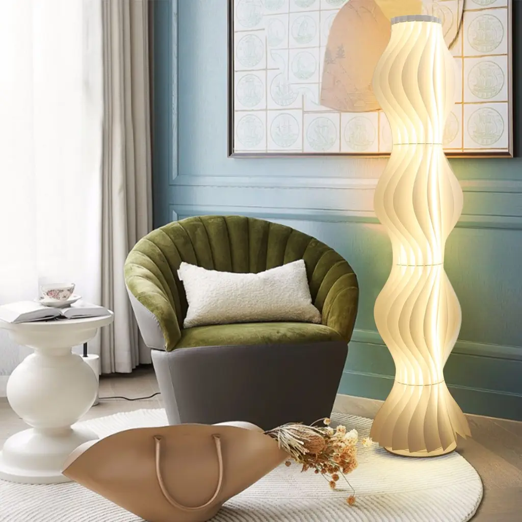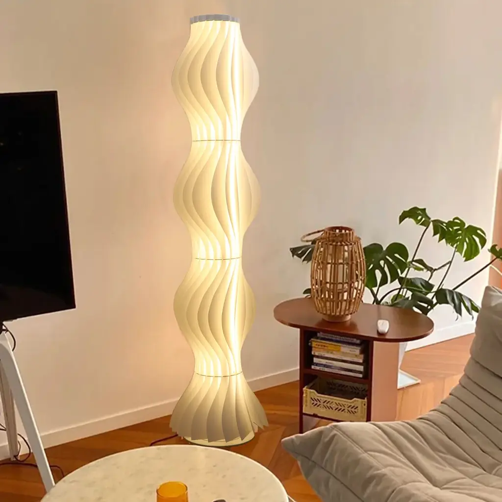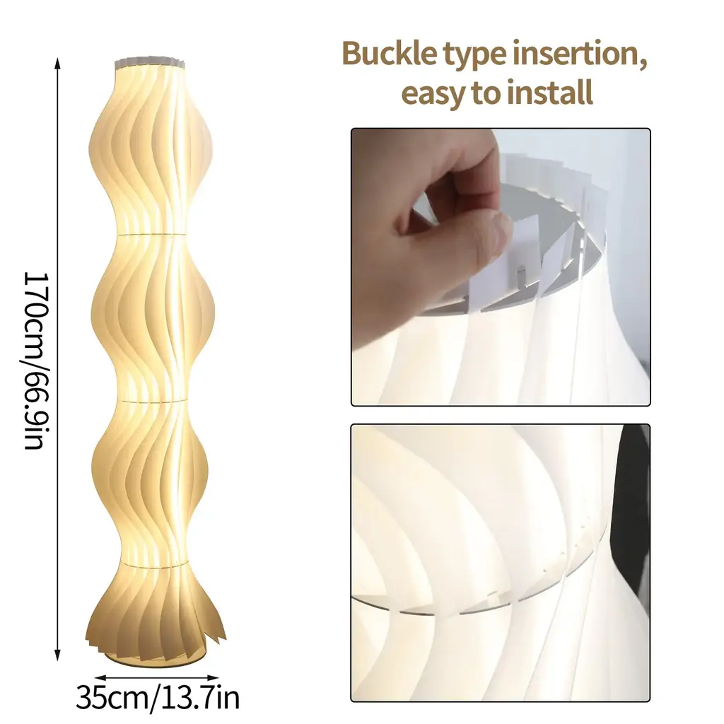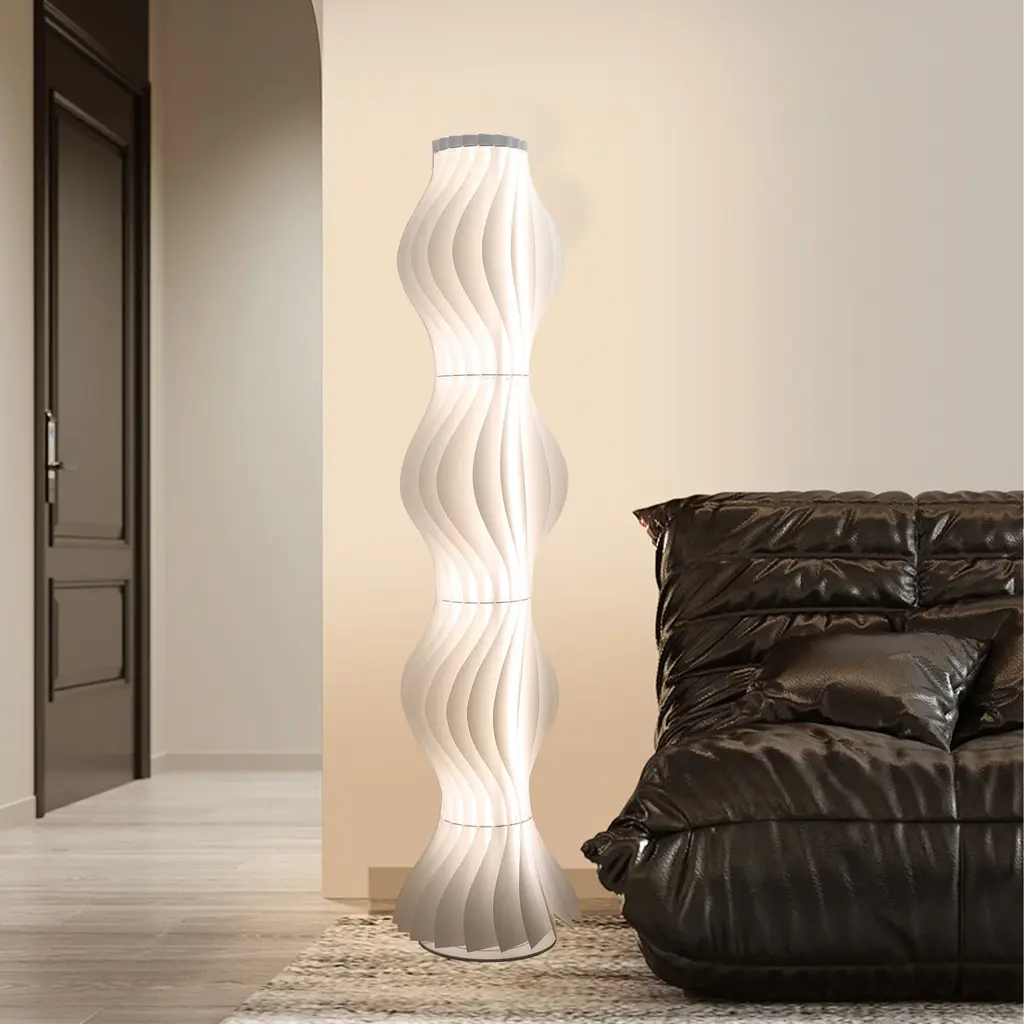 Tall Modern Floor Lamp Decorative Wavy Handmade Acrylic Lampshade Lighting White - 13.7" W X 66.9" H