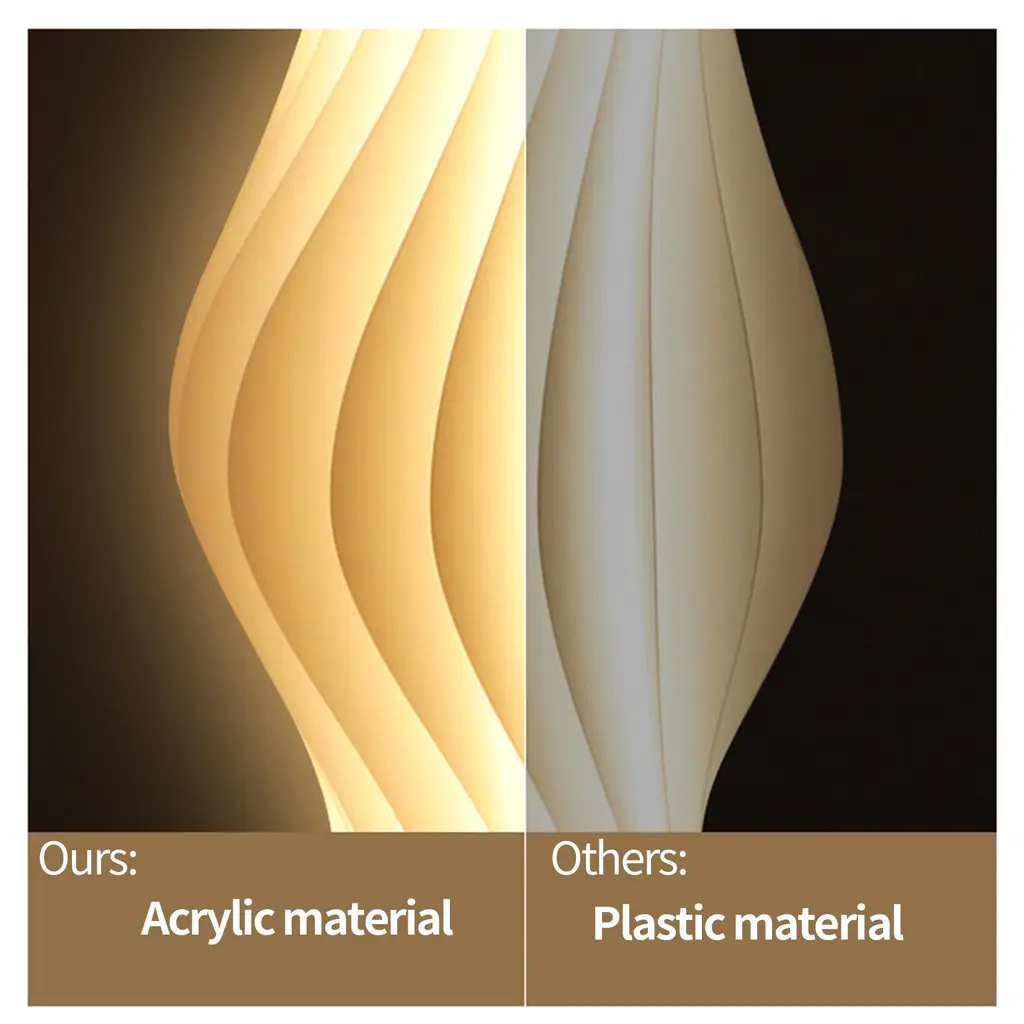 From the work of the famous Italian designer Karmid Rashidde, The design is inspired by the beautiful Andromeda in the starry sky, Its unique design shape is like the graceful curve of a woman as a whole, with concave and convex, white folds as bright as starlight, every angle is a beautiful work of art.The light is refracted through the frosted acrylic lampshade, soft and not dazzling, and the flexible light is scattered on the floor and wall, shining like a diamond in the whole room, the perfect fusion of light and lighting line makes the home full of light and warmth.Feature:Dimensions:Package Includes: