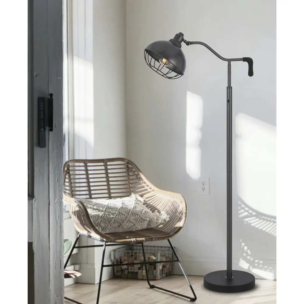 This modern cage style floor lamp will make a great addition to any livingroom or office space. It features an adjustable neck for optimal control of light. With it's slim frame and minimalistic design, this lamp works well with various design styles.