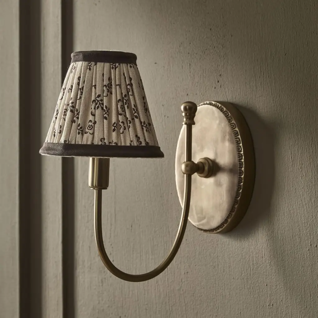 UpgradeLights Tan Linen 12 Inch European Drum Lampshade with Uno Fitter Uno has a 1 1/2 inch drop and recesses part of the socket into the shade. Heavy White Eggshell lining Great for replacing a Floor Lampshade Shade Dimensions 6 x 12 x 8 Note: All lampshade sizes are top diameter by the bottom diameter and then the height. Material Type: LinenStyle: TraditionalShape: DrumSpecial Features: Brass Uno Learn more: The Uno fitter is threaded so that it screws onto the bottom end of a socket. Down Bridge arm lamps are the most common type of lamp that take a shade with an Uno fitter. Down Bridge arms are usually found on floor lamps, but table lamps can have them as well. They have a top arm which extends off to one side of the central column. Down Bridge arm lamps take a shade that is designed to push the light downward. Top Quality frames and materials