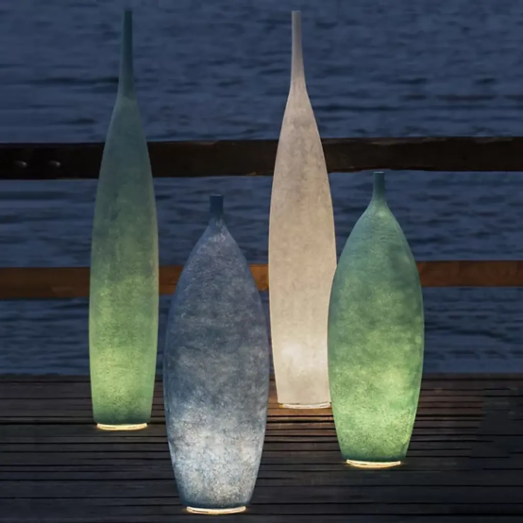 The Tank Outdoor Floor Lamp by In-Es Art Design is a captivating addition to spaces. With a sculptural form, this floor lamp creates a soft, romantic atmosphere as a layer of illumination filters through its unique surface. Constructed from Nebulite®, a material made from a mix of resin and fibers, the body of this lamp mimics the lunar surface, creating a landscape that captures variances of light and shadow that playfully diffuses the light source within it.