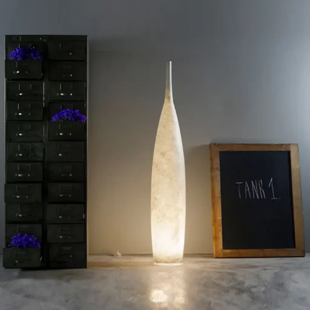 The Tank Outdoor Floor Lamp by In-Es Art Design is a captivating addition to spaces. With a sculptural form, this floor lamp creates a soft, romantic atmosphere as a layer of illumination filters through its unique surface. Constructed from Nebulite®, a material made from a mix of resin and fibers, the body of this lamp mimics the lunar surface, creating a landscape that captures variances of light and shadow that playfully diffuses the light source within it.