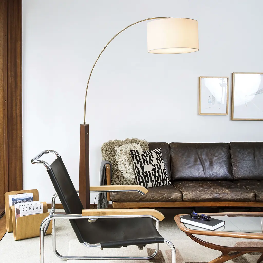 Introducing the Taper 1-Light Arc Floor Lamp by NOVA of California, an exquisite fusion of walnut wood and weathered brass that brings warmth and sophistication to your space. With a white cotton-linen tiered shade and a steel base, this contemporary floor lamp is designed to elevate your home decor. Immerse your surroundings in the soft glow of the Taper Arc Lamp, where the timeless beauty of walnut wood meets the vintage charm of weathered brass. The Taper Arc Floor Lamp features a stunning combination of walnut wood and weathered brass, creating a perfect balance between warmth and vintage elegance. Adorned with a white cotton-linen tiered shade, the lamp exudes a sense of sophistication while diffusing light softly. Supported by a sturdy steel base, the Taper Lamp ensures stability and durability, making it a reliable addition to your living space. The lamp's distinctive arc design adds a touch of sculptural elegance, allowing it to gracefully arch over furniture and illuminate your space with style. Tailor the lighting to suit your mood and ambiance with the built-in dimmer switch, offering customizable illumination for every occasion. The Taper Lamp provides versatile illumination, making it ideal for living rooms, bedrooms, reading nooks, or home offices. Smart switch compatible - effortlessly sync with Amazon Echo, Google Assistant, and Apple Home for easy & automated control. Contract grade: high quality materials, quality workmanship, built to last a lifetime & designed in Venice Beach, California. NOVA of California is the oldest light company in North America and has been making original contemporary designs for 100 years. Sustainability statement: We are committed to minimizing the unwanted impact our business has on the environment. We care for our planet.Enhance your home with the Taper 1-Light Arc Floor Lamp, where natural wood meets modern sophistication. Explore the Taper collection and discover a perfect balance of style and functionality.