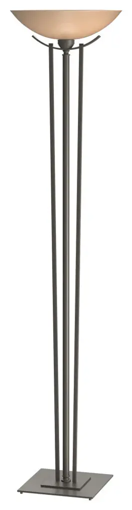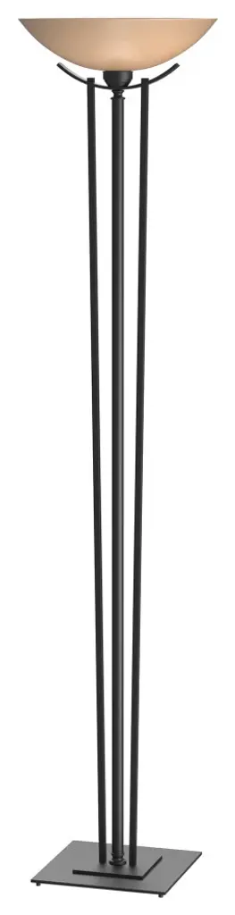 Taking a cue from the tall ornamental stands for candlesticks from long ago, our Torchiere rises to the height of elegance with two rods of steel escorting the steel tube up to the glass bowl.Bulbs Included: YesBulb Wattage: 150Type of Bulb: A-19 E26 medium Replaceable LEDNumber of Bulbs: 1Torchiere floor lamp with 20" diameter bell glass options. Foot dimmer included. 9 watt JA8 compliant LED bulb included for CA Title 20 compliance.All Hubbardton Forge products are hand-crafted to last one at a time in Vermont and backed by a Lifetime Limited Warranty.