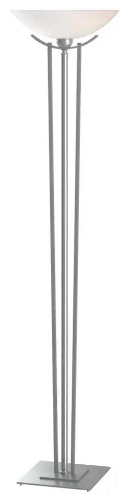 Taking a cue from the tall ornamental stands for candlesticks from long ago, our Torchiere rises to the height of elegance with two rods of steel escorting the steel tube up to the glass bowl.Bulbs Included: YesBulb Wattage: 150Type of Bulb: A-19 E26 medium Replaceable LEDNumber of Bulbs: 1Torchiere floor lamp with 20" diameter bell glass options. Foot dimmer included. 9 watt JA8 compliant LED bulb included for CA Title 20 compliance.All Hubbardton Forge products are hand-crafted to last one at a time in Vermont and backed by a Lifetime Limited Warranty.