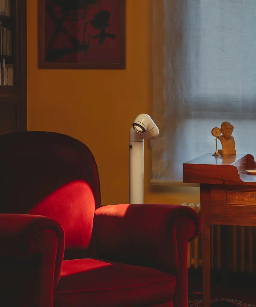 The idea for Tatu was born on a transoceanic flight; while André Ricard was reading about Argentinean wildlife, he observed that the light above his seat did not disturb his sleeping wife who was sitting next to him. The lamp became a pop-art icon in Europe. Tatu takes us back to carefree days, when consumer goods came to the European middle classes and their children started a massive aesthetic revolution; from Andy Warhol to The Beatles to Mary Quant. Everything could be expressed differently. After nearly 50 years, Santa & Cole re-edited this classic with improved lighting features. Santa & Cole's edition of the original Tatu is enhanced by applying LED technology. This makes the light intensity easily adjustable, and the light source considerably less hot and long-lasting. It also features a moveable converging lens that allows the user to adjust the focal length. Produced by the Barcelona-based lighting purveyor, Santa & Cole.