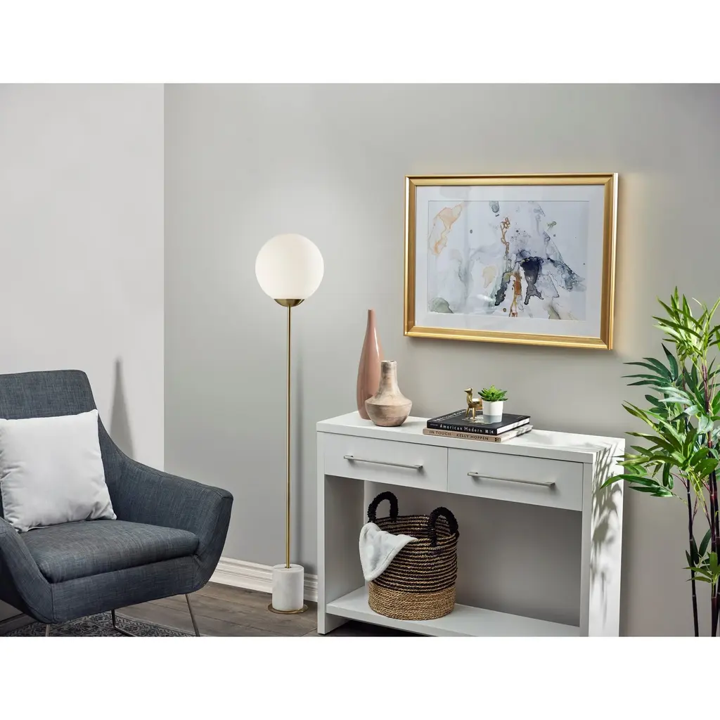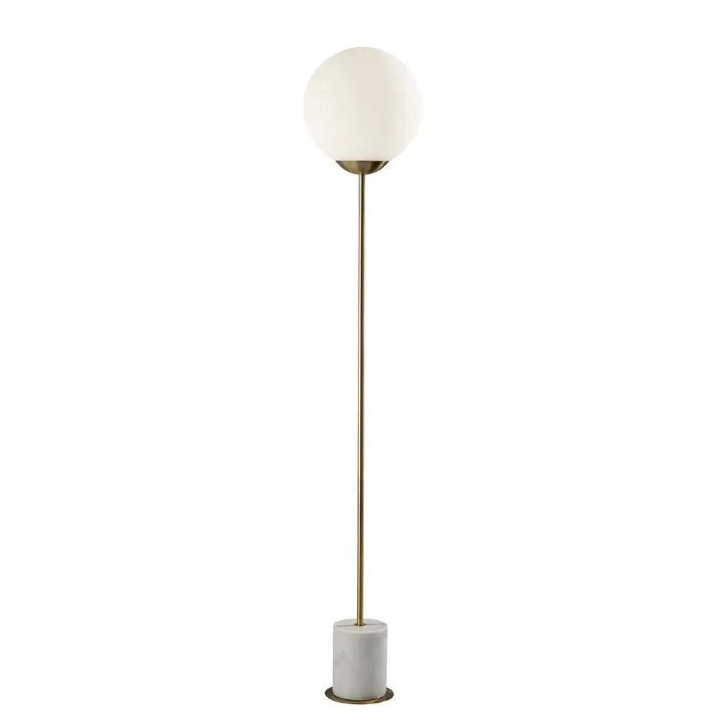 Introducing the 2158-21 Terra Floor Lamp, a masterpiece of timeless design and modern elegance. This floor lamp boasts an antique brass finish that perfectly complements its chunky white marble base, radiating sophistication and character. The focal point of this lamp is its white matte glass globe-shaped shade, which diffuses a soft and welcoming glow. Standing tall at 65 inches, the Terra Floor Lamp is a versatile lighting solution that enhances the ambiance of any living space. Designed for ease of use, this lamp features an on/off in-line foot step switch, providing effortless control over the illumination. The Terra Floor Lamp seamlessly blends form and function, making it the perfect choice to illuminate and elevate your interior decor. Timeless Elegance: The 2158-21 Terra Floor Lamp features an antique brass finish and a chunky white marble base, bringing together timeless design with modern aesthetics. Inviting Glow: The lamp showcases a white matte glass globe-shaped shade that casts a soft and welcoming glow, creating a warm and inviting atmosphere. Impressive Height: Standing at 65 inches, this floor lamp becomes a prominent focal point in your space, providing ample illumination. Foot Step Switch: The Terra Floor Lamp includes an on/off in-line foot step switch for convenient and hands-free control over the lighting, making it effortless to set the mood. Classic and Practical: Elevate your living space with the Terra Floor Lamp, where timeless elegance meets user-friendly features, enhancing your interior decor with a touch of vintage charm and a warm, diffused glow.