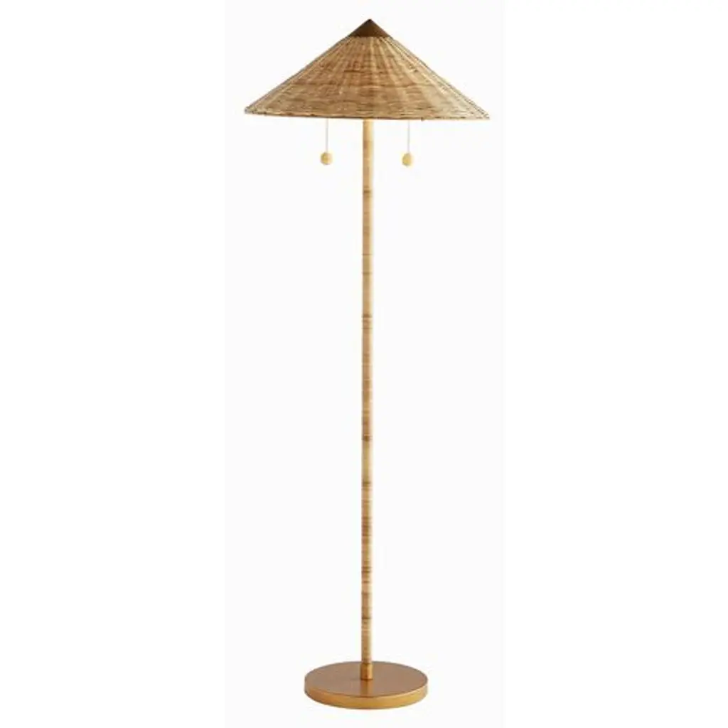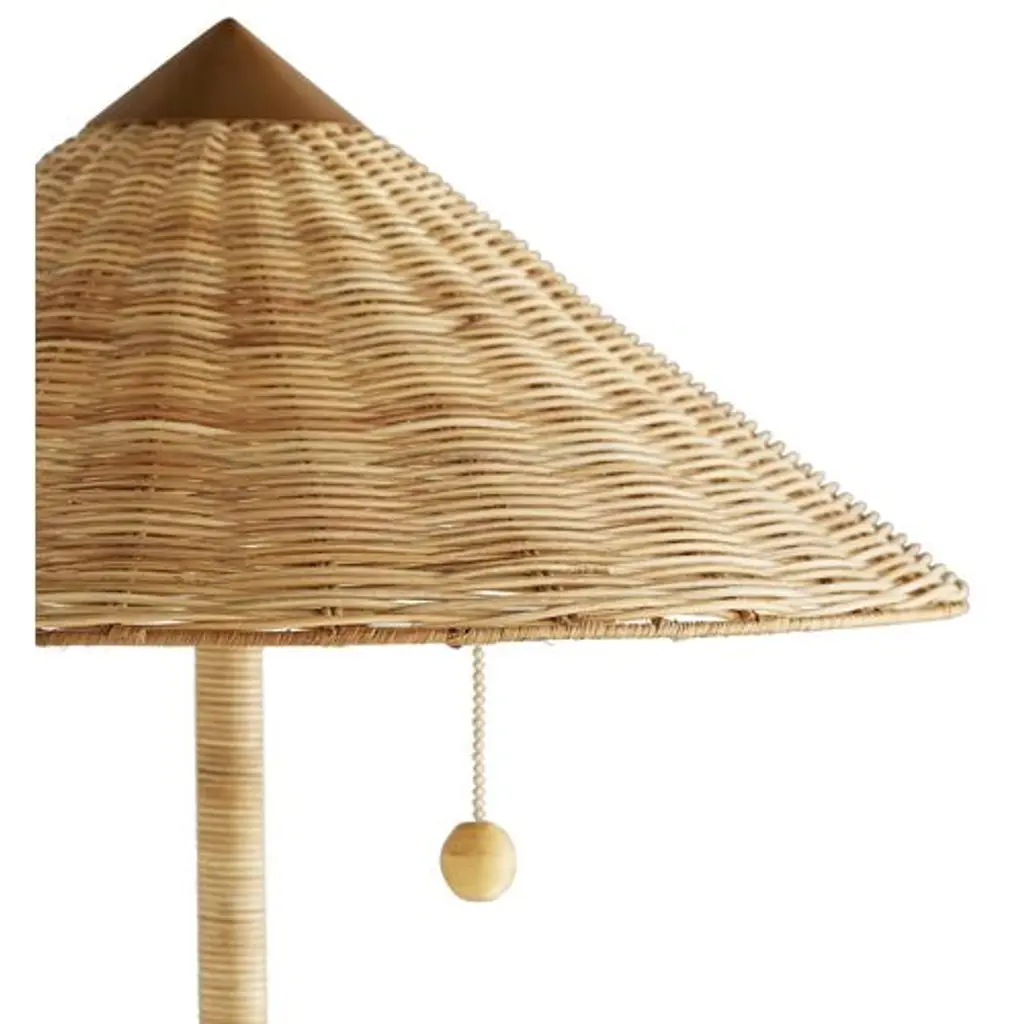 Full of refined tropical appeal, this floor lamp is all about incredible natural texture, from it's wrapped body to its handwoven rattan shade.