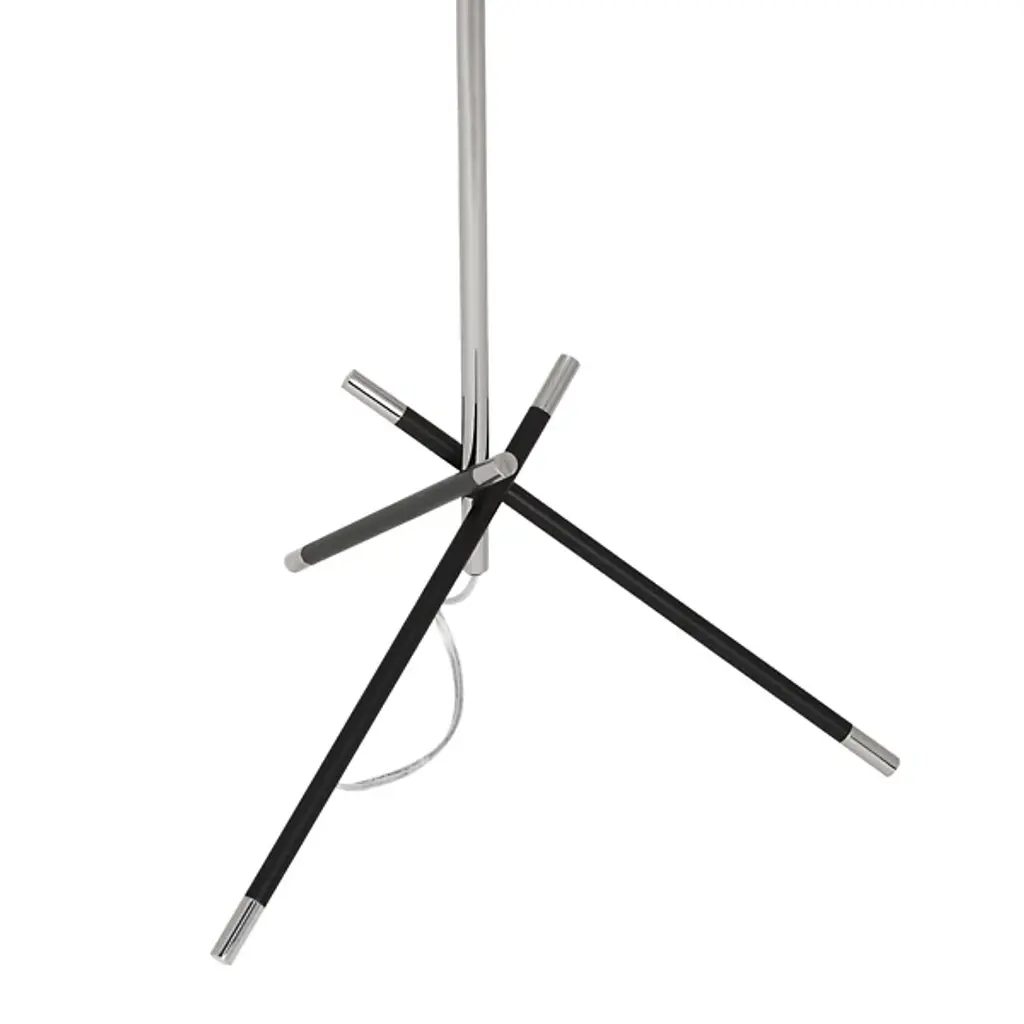 The Thatcher Floor Lamp from Robert Abbey is a graceful, energetic personality, defined by its thoughtfully arranged contours. The piece carries itself with modern finesses as a sculptural composition. Like a bunch of straw on a thatched roof, this floor lamp's base presents a crossing arrangement of metal accents. A tall, slender column rises with the same bold contrasting notes of the accents below. The hardback linen drum shade creates a floating impression. Ample light flows through its openings, adding crisp highlights to the metal structure.