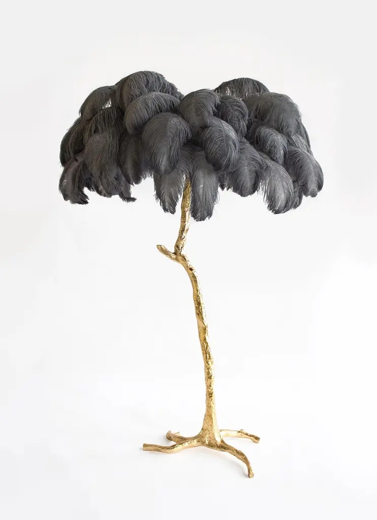 The feather floor lamp, edition piece by A Modern Grand Tour.An illuminating palm tree, resplendent with exquisite ostrich feather foliage, the feather floor lamp takes centre stage in any luxury setting and delivers the ultimate midas touch to Hollywood regency decors. A pièce de résistance among standing lamps, this lighting work of art commands attention to its exquisite design and intricate craftsmanship.