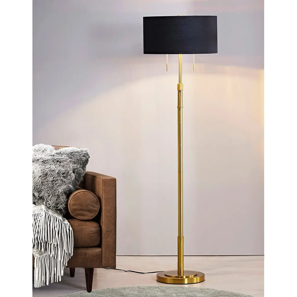 The Grande 55"~66" Adjustable Floor Lamp_antique Brass - Drum_black/goldshade