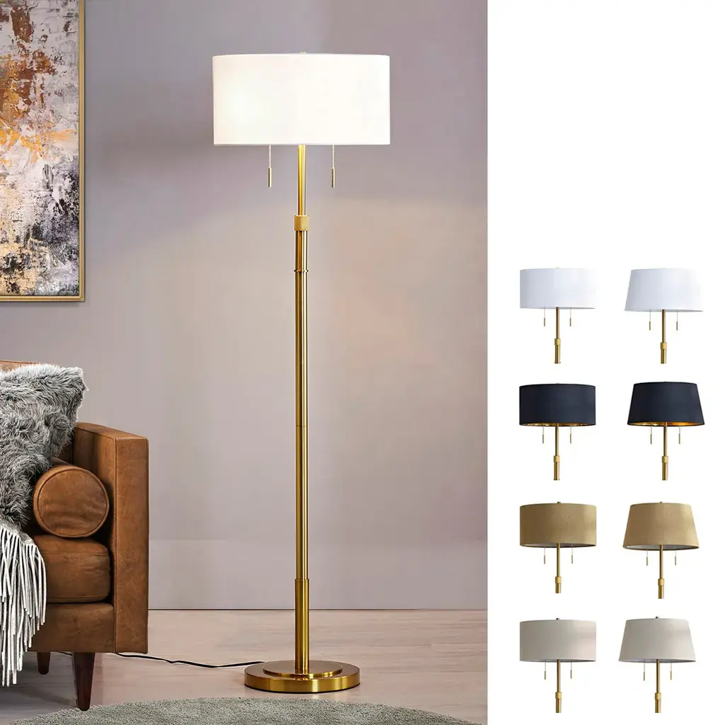 Illuminate your larger space with style and functionality using the HOMEGLAM Grande Adjustable Floor Lamp. With a height range of 55" to 66" and a choice of 18" diameter lamp shades, this lamp is perfect for any room. The lamp is built with 2 lights, each controlled by a classic pull chain on/off switch, and a strong metal construction on a 12" steady, heavy weighted base. Add value to your decor with the Grande Adjustable Floor Lamp.Features: