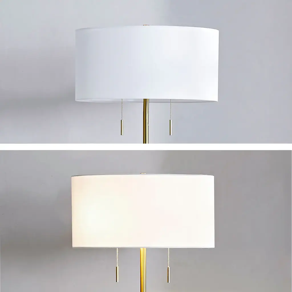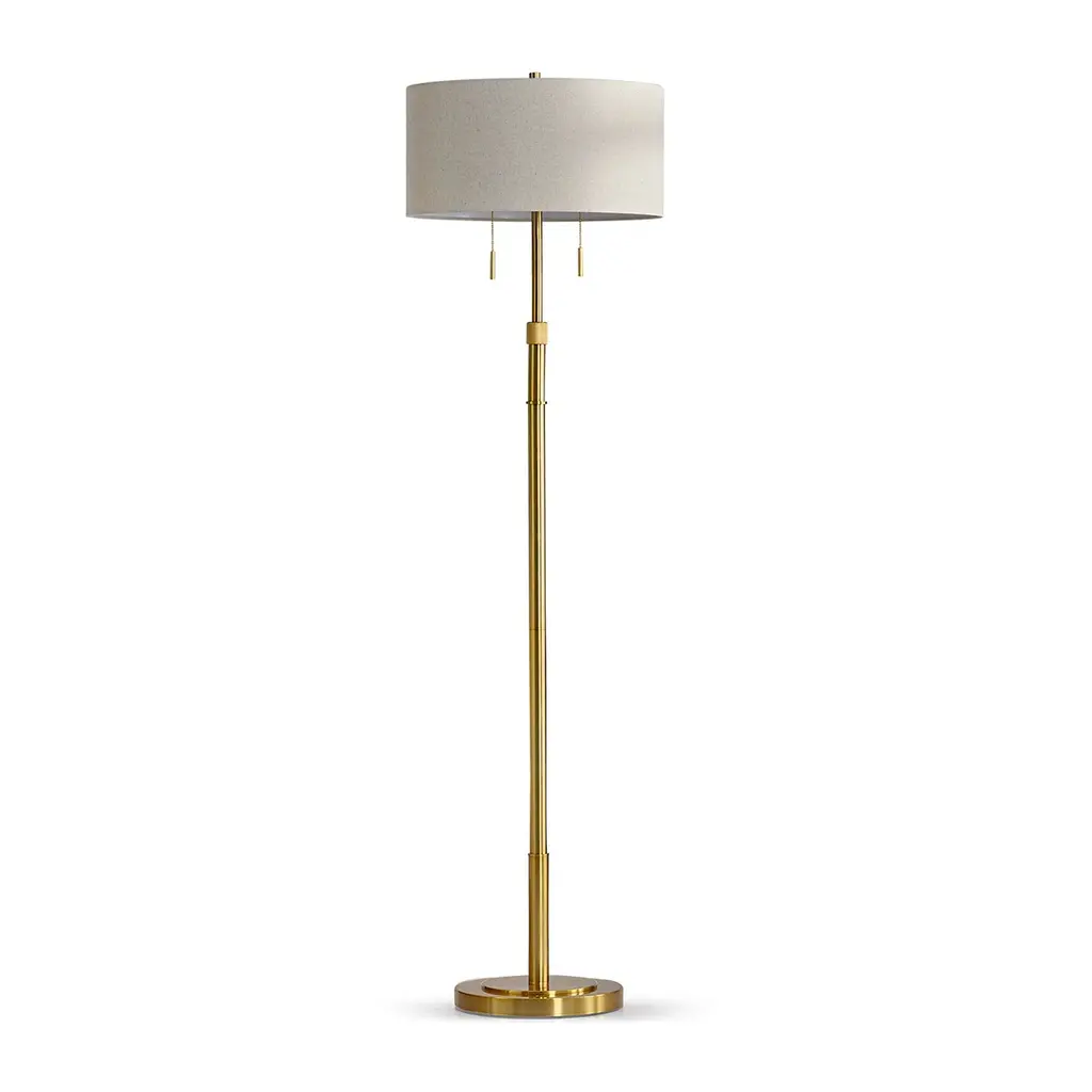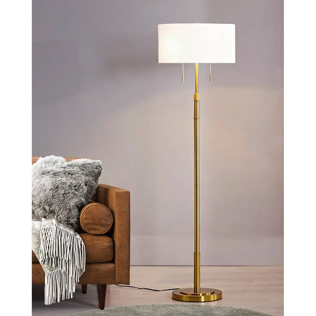 Illuminate your larger space with style and functionality using the HOMEGLAM Grande Adjustable Floor Lamp. With a height range of 55" to 66" and a choice of 18" diameter lamp shades, this lamp is perfect for any room. The lamp is built with 2 lights, each controlled by a classic pull chain on/off switch, and a strong metal construction on a 12" steady, heavy weighted base. Add value to your decor with the Grande Adjustable Floor Lamp.Features: