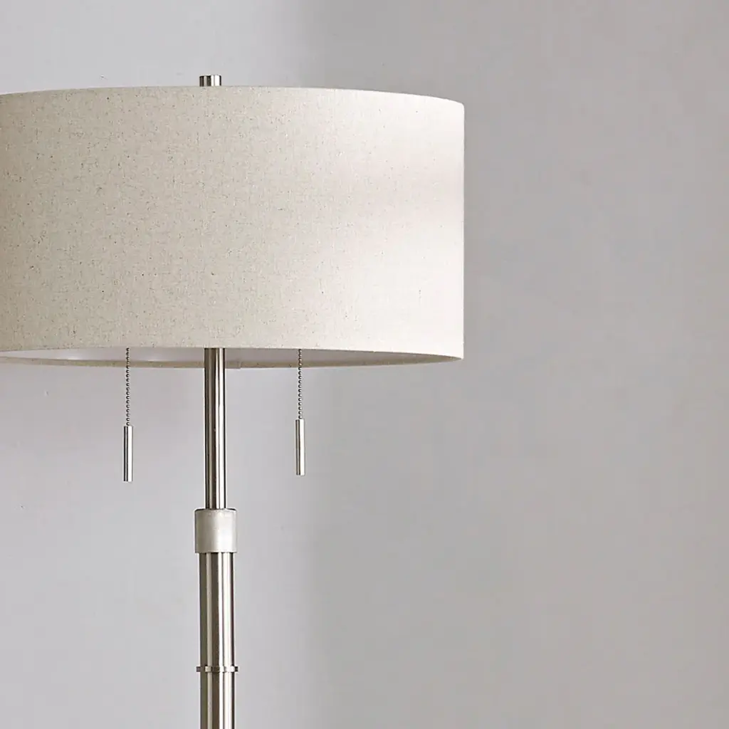 The Grande 55"~66"h Adjustable Floor Lamp_brushed Nickel, Drum_tan Shade