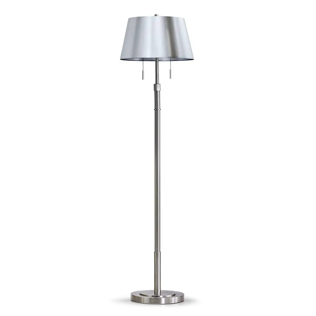 HOMEGLAM design, the Grande floor lamp series designed for larger spaces, the floor lamp features adjustable 54"~68" lamp height with selections of large 18" ø lamp shades, the lamp built with 2 lights each control by classic pull chain on/off switches, the floor lamp constructed with strong metal on a 12“ steady heavy weighted lamp base, It is a perfect additions to decorate your spaces with style and value Features:• Adjustable 55"~66"H• 18"ø lamp shade selections available• 2 lights with pull chain on/off switch• Strong build with metal on 12" steady heavy weighted base•. Uses two E26 Base, A19, 100W Max Incandescent or Equivalent LED Bulb, *Bulbs not included• UL Listed, Assemble Required