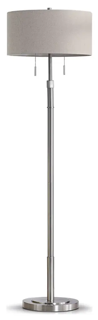 HOMEGLAM design, the Grande floor lamp series designed for larger spaces, the floor lamp features adjustable 54"~68" lamp height with selections of large 18" ø lamp shades, the lamp built with 2 lights each control by classic pull chain on/off switches, the floor lamp constructed with strong metal on a 12"œ steady heavy weighted lamp base, It is a perfect additions to decorate your spaces with style and value Features:• Adjustable 55"~66"H• 18"ø lamp shade selections available• 2 lights with pull chain on/off switch• Strong build with metal on 12" steady heavy weighted base•. Uses two E26 Base, A19, 100W Max Incandescent or Equivalent LED Bulb, • Bulbs not included• UL Listed, Assemble Required