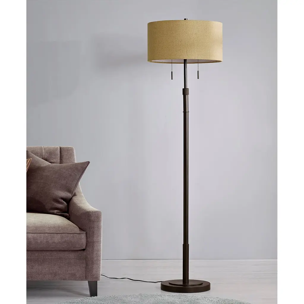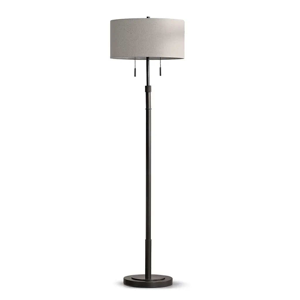 Introducing the Grande adjustable floor lamp, designed by HOMEGLAM for larger spaces. This floor lamp boasts a strong metal construction on a steady 12" base, with a height that can be easily adjusted between 55" and 66". You can choose between large 18"ø lamp shades and enjoy the convenience of two pull chain on/off switches, each controlling one of the two lights. With its stylish design and functional features, this lamp is a valuable addition to any space.Features: