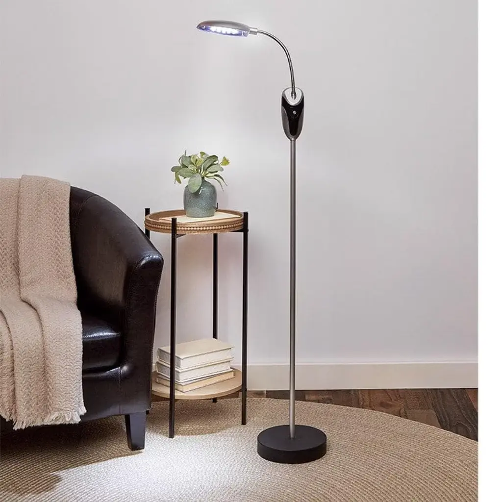 You'll love the convenience of the Cordless Anywhere Lamp. It's a rare kind of light: a cordless floor lamp! Move the lightweight lamp from room to room and use the flexible neck to direct the light wherever you need it. The 16 LED bulbs brighten any dim area. Easy-to-reach on/off button. Made of: Metal andplastic Measurements: 8" dia. x 51-1/2"H Notes: Requires 6 "AA" batteries, not included Easy assembly required