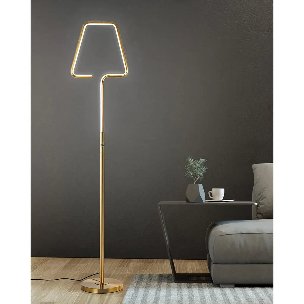 HOMEGLAM design, patent pending, THE LAMP simple iconic lamp shape design LED floor lamp featuring 13W Max brightness, the 3000k warm light controlled by a dimmable 4 ways easy reach on pole touch switch, with the 4-way dimmer switch can be easier control ight for high-medium-low and off, the new THE LAMP series LED lamps is a perfect decorative lamps for your space with a simple symbolic illumination• 63"H LED FLOOR LAMP • Buit-in 13W Max, dimmable 3000K warm LED light • Easy reach onpole dimmable touch switch • Easy control 4Way dimmable switch for High-Medium-Low and off light • ETL certified LED driver, AC120V input, DC 24V Output • 13.5" width lamp shade, 10" ø steady weighted lamp base • Easy assembly required • Patent Pending