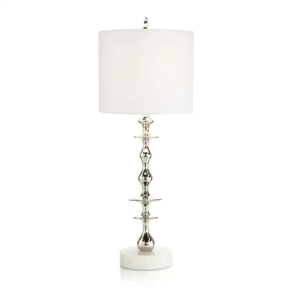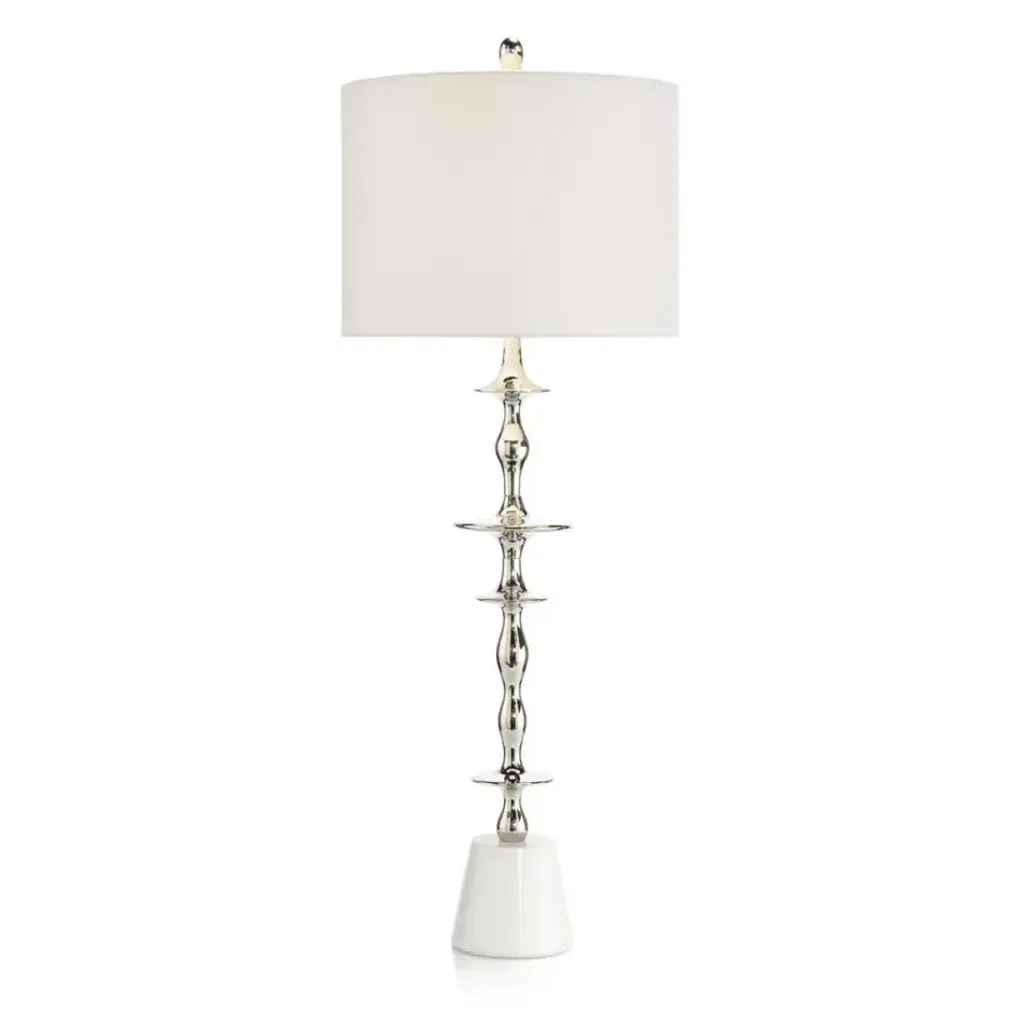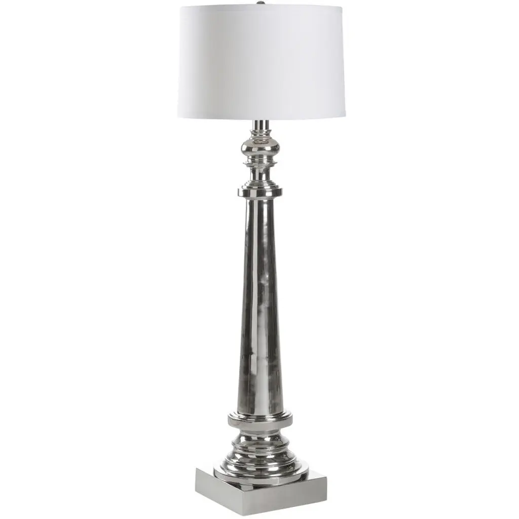 INSPIRED BY THE TUSCAN ORDER COLUMNS DESIGNED BY THE ROMANS DURING THE RENAISSANCE, THIS CLASSIC FLOOR LAMP WILL BRING BEAUTY AND FUNCTION INTO YOUR HOME. THE SIMPLE DESIGN IS CRAFTED OF STEEL WITH A POLISHED NICKEL FINISH THAT COMPLEMENTS ANY DECORATIVE STYLE. A WHITE LINEN DRUM SHADE PROVIDES BALANCE TO THE DESIGN WHILE DIFFUSING LIGHT THROUGHOUT THE ROOM.